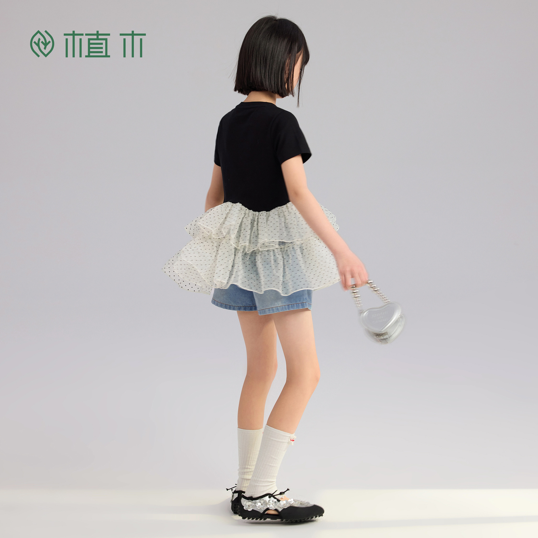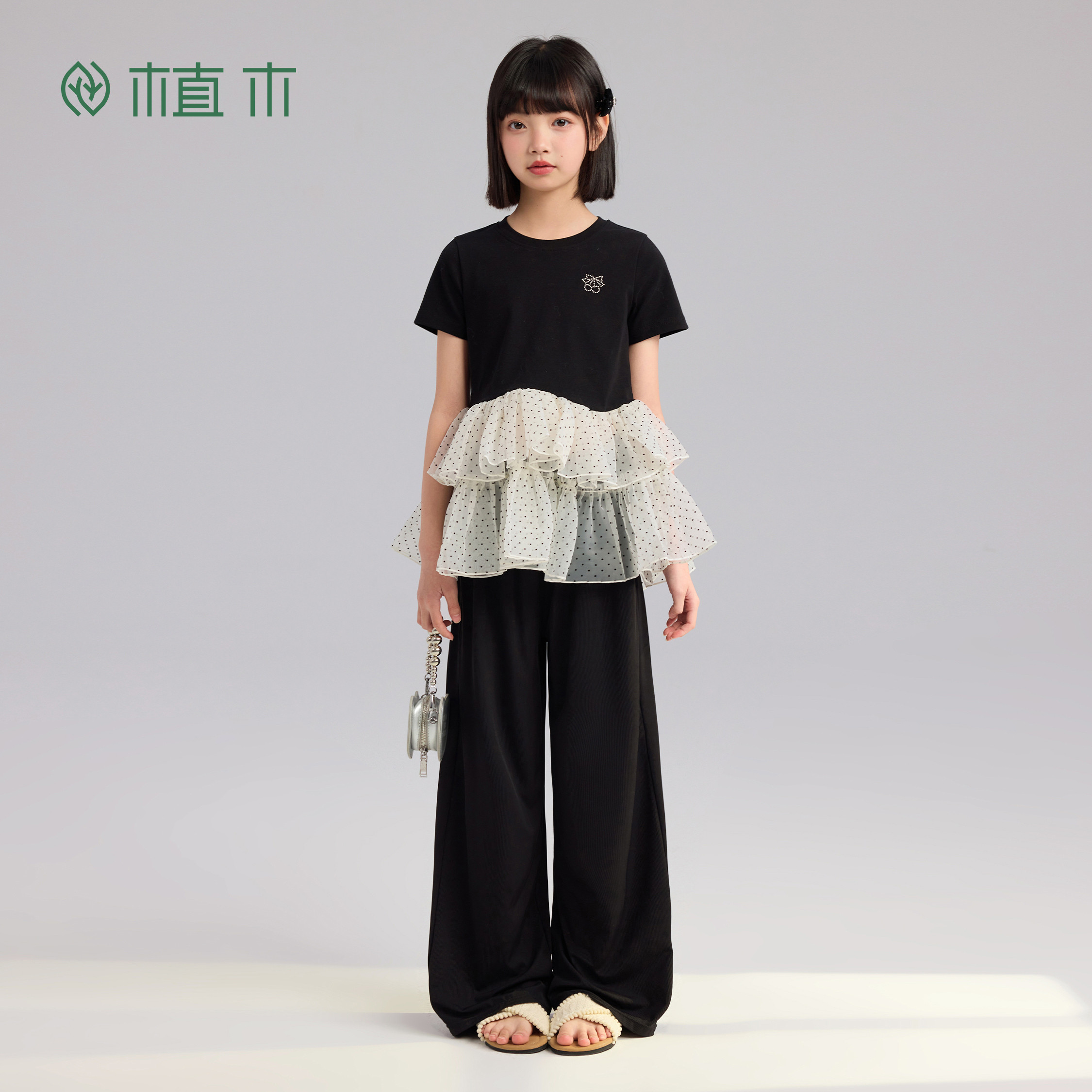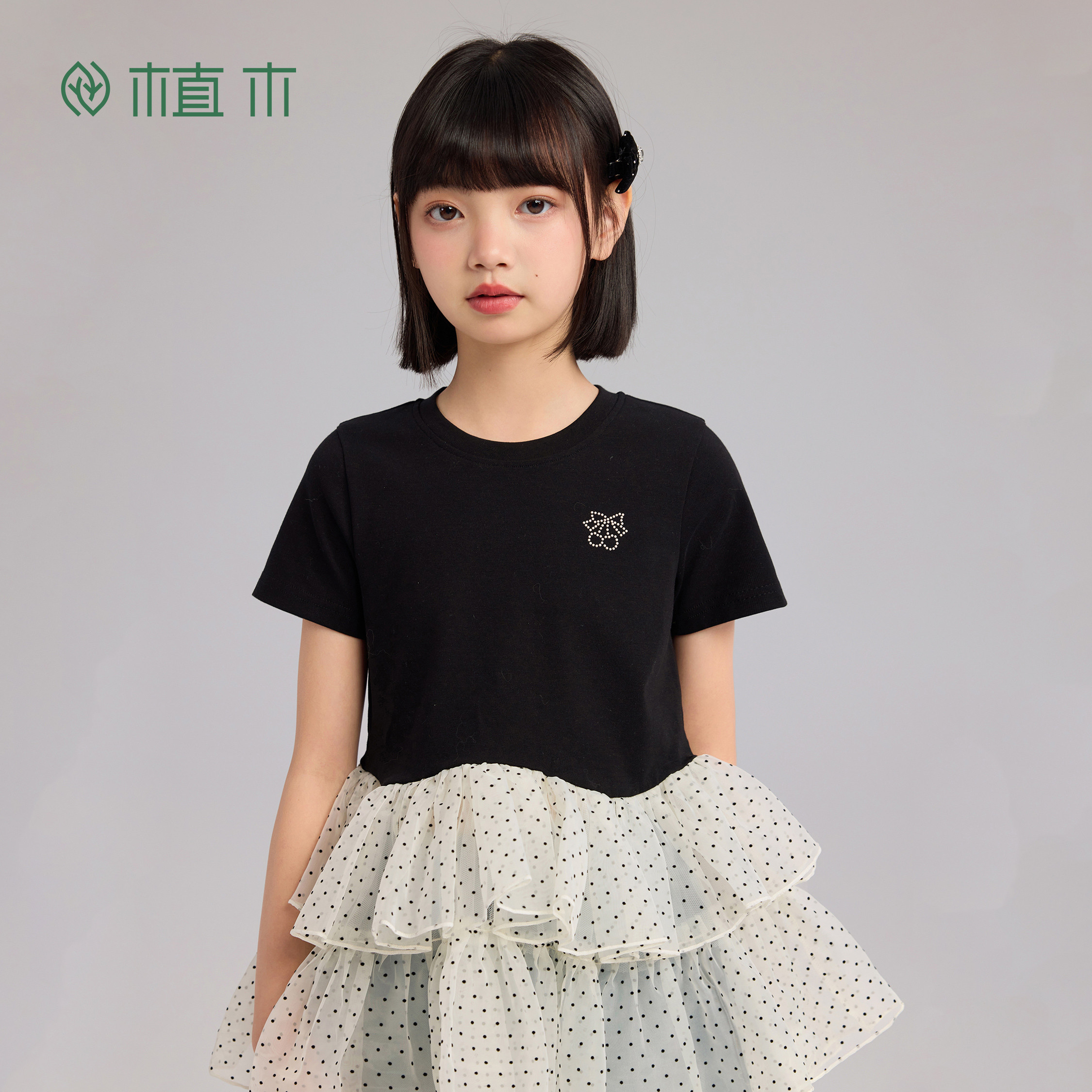 青少年26夏季 植木 新 校园女童T恤 裙摆波点拼接T恤 落下 星星由