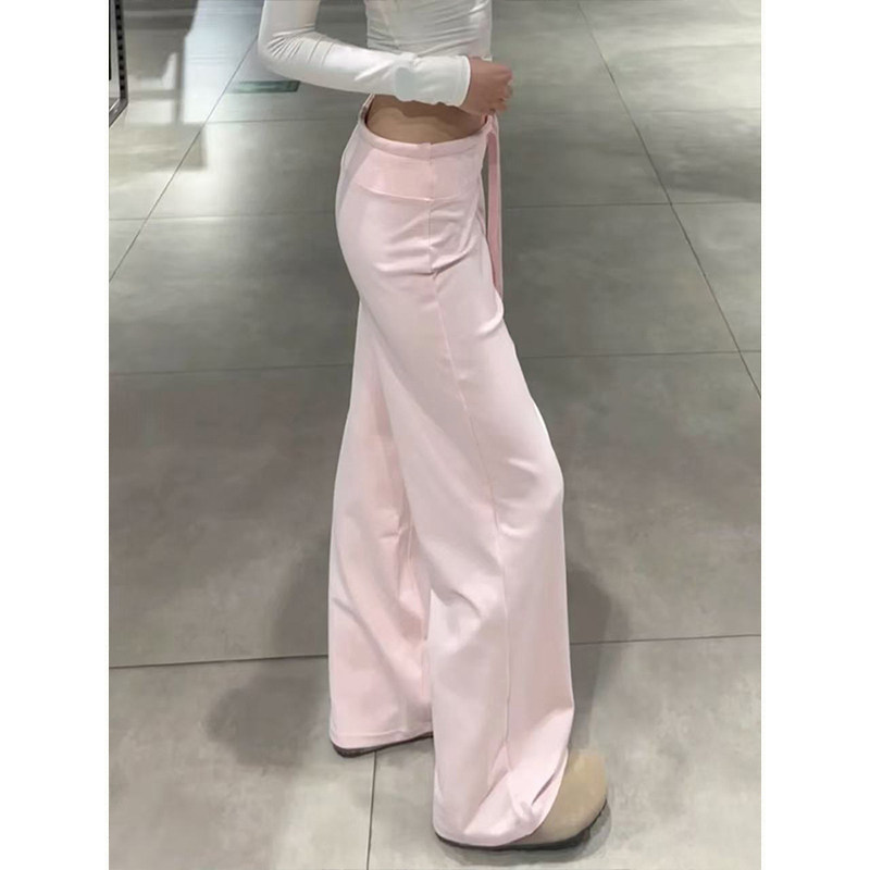 asomesome美式 女灰色修身 休闲松弛运动裤 子 黑色微喇直筒低腰卫裤