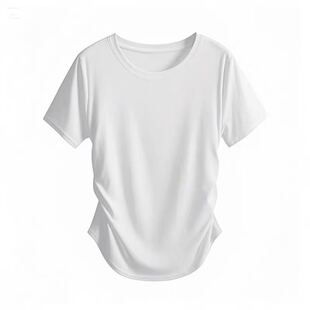 圆领短款 小田tia专享 不规则收腰 T恤 弹力短袖由