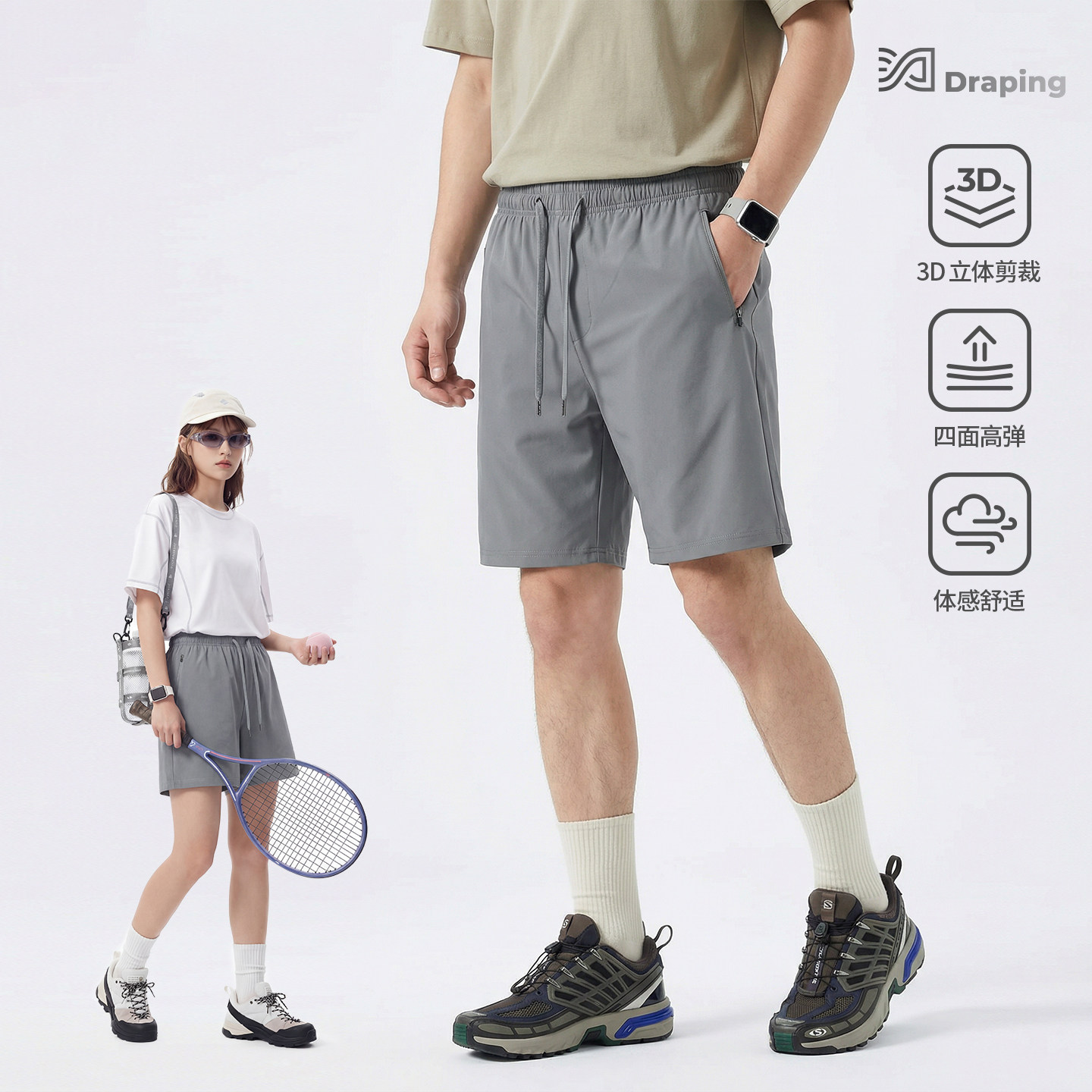 宽松裤 班尼路四面弹运动男士 短裤 夏季 子男松紧腰跑步健身五分裤