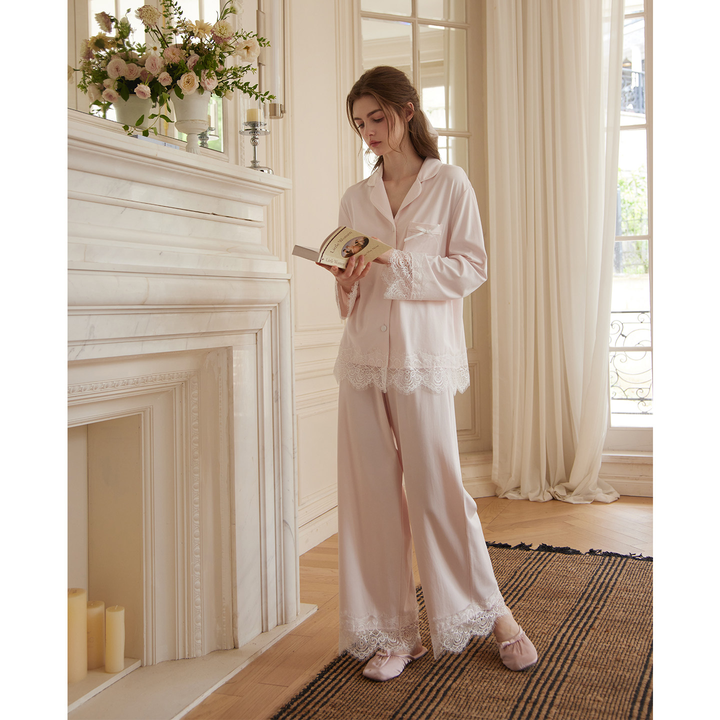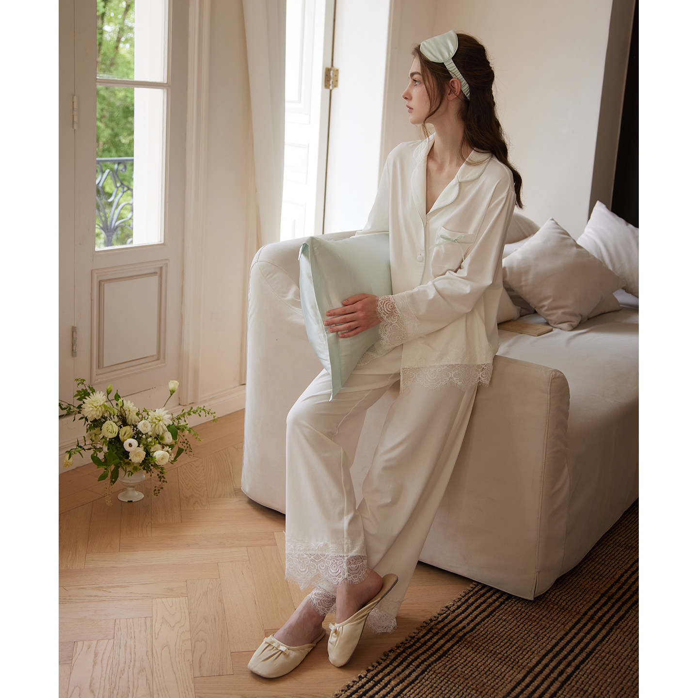 2026春季 长裤 宫廷风蕾丝花边宽松家居服套装 云朵棉睡衣女士长袖
