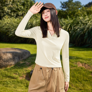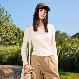 雪中飞v领打底衫 2026新款 休闲内搭上衣小个子正肩长袖 t恤PC 女春季
