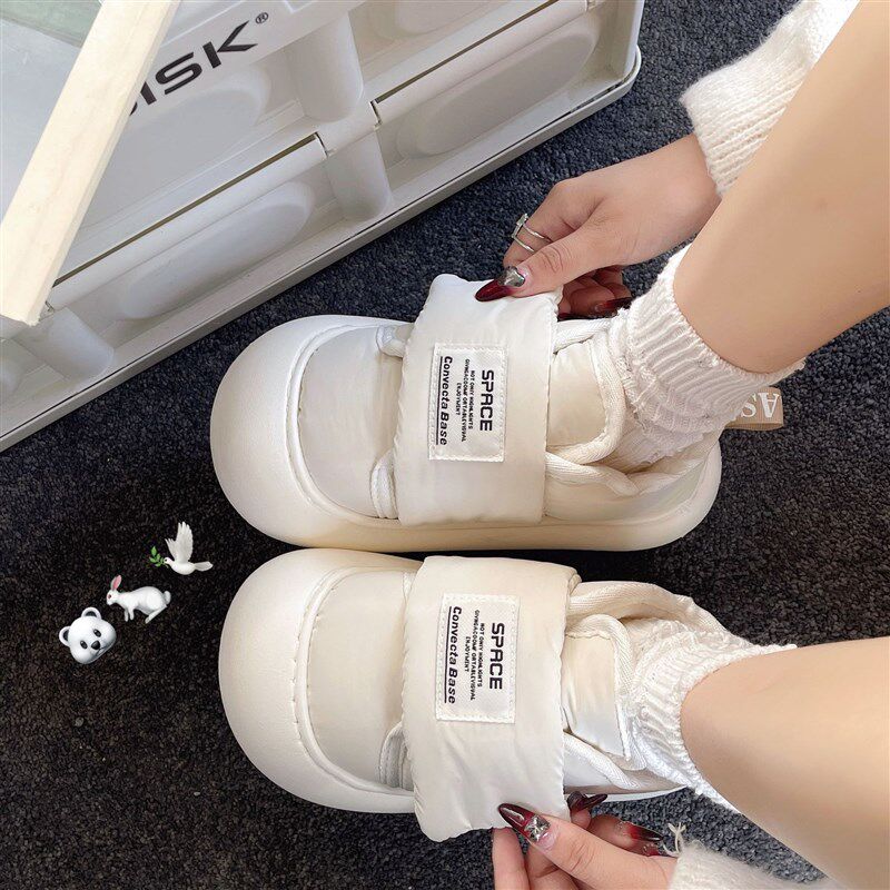 孕妈厚底加绒棉拖鞋 2024秋季 新V款 魔术贴小白 女保暖奶油面包棉鞋