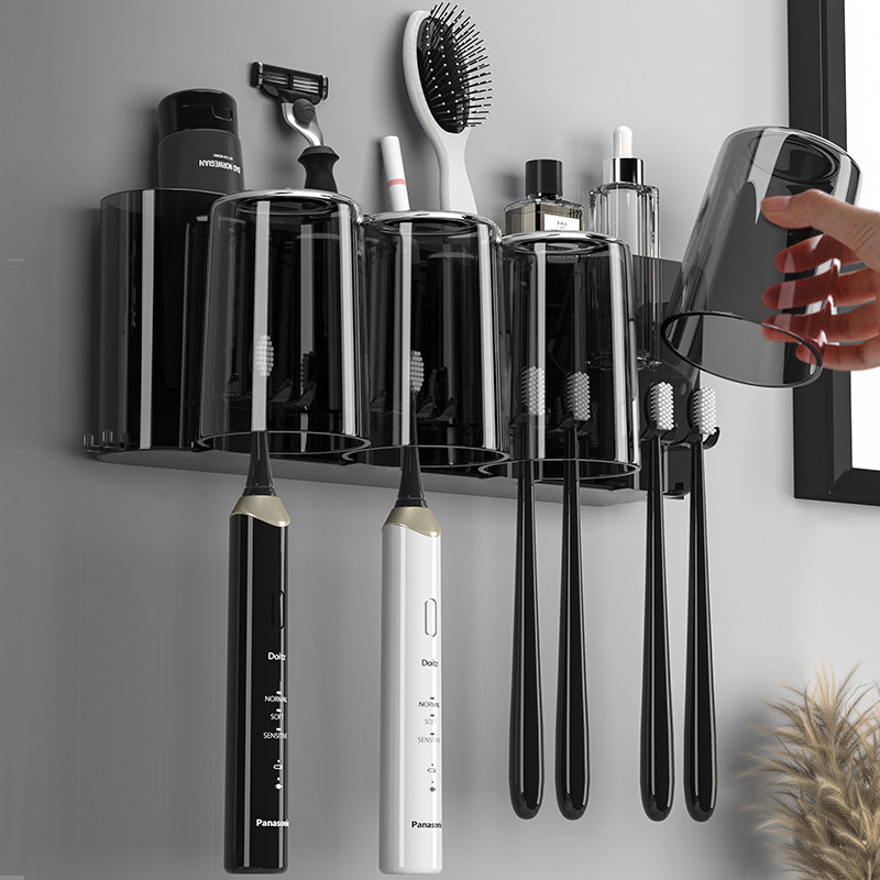 为您提供商品牙刷置物架免打孔漱口杯架卫生间黑色刷牙杯壁挂式 收纳盒牙缸套装的详细介绍,