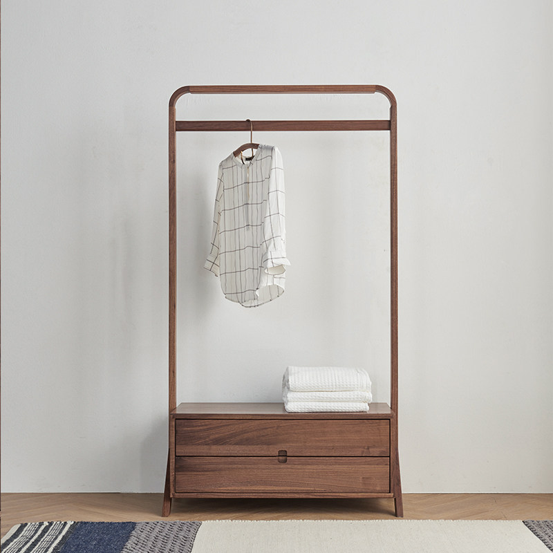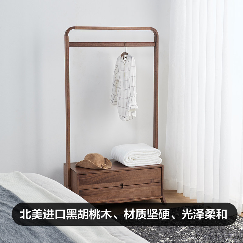 北欧落地挂衣架全实木衣帽架卧室衣架家用北美黑胡桃木鞋 凳 柜换鞋