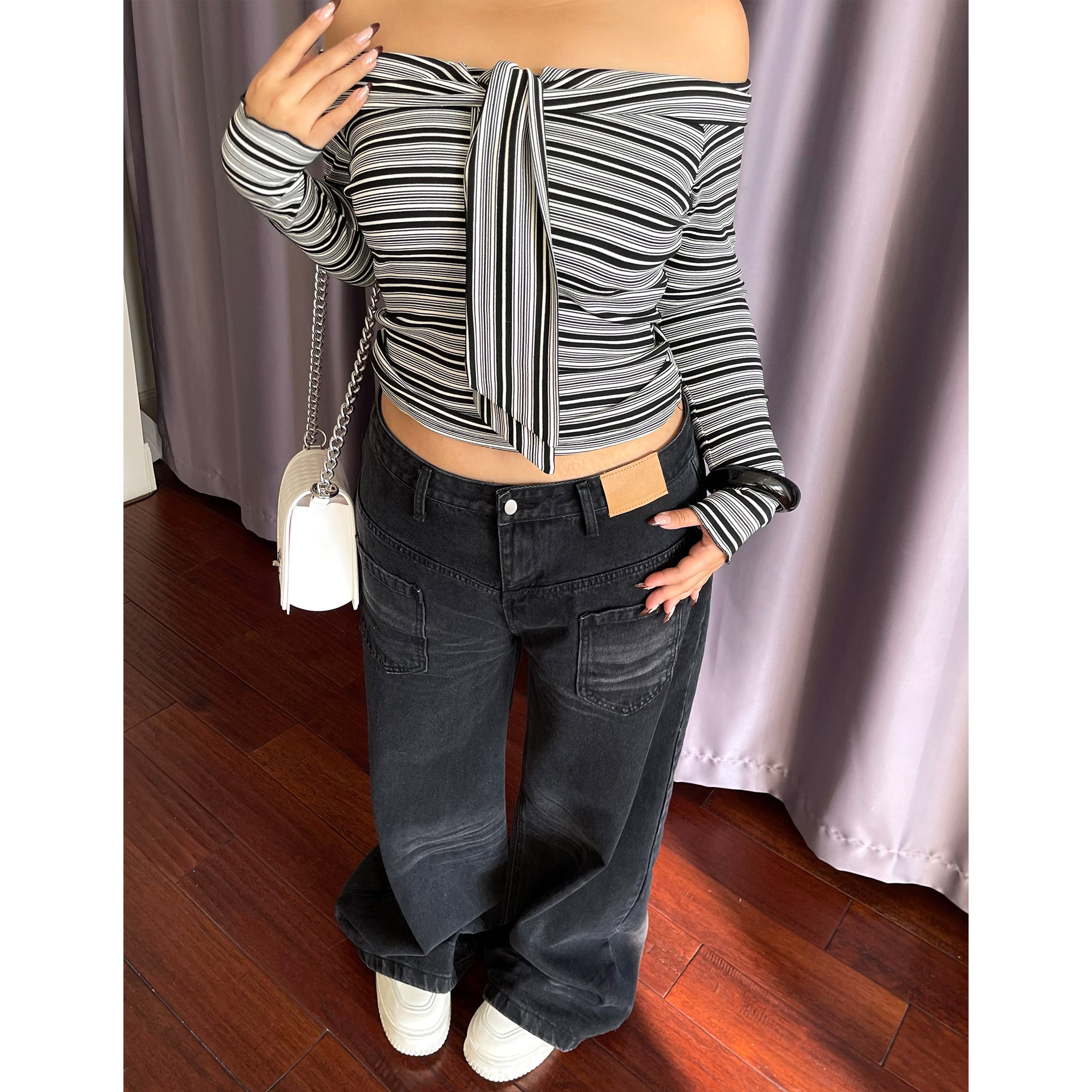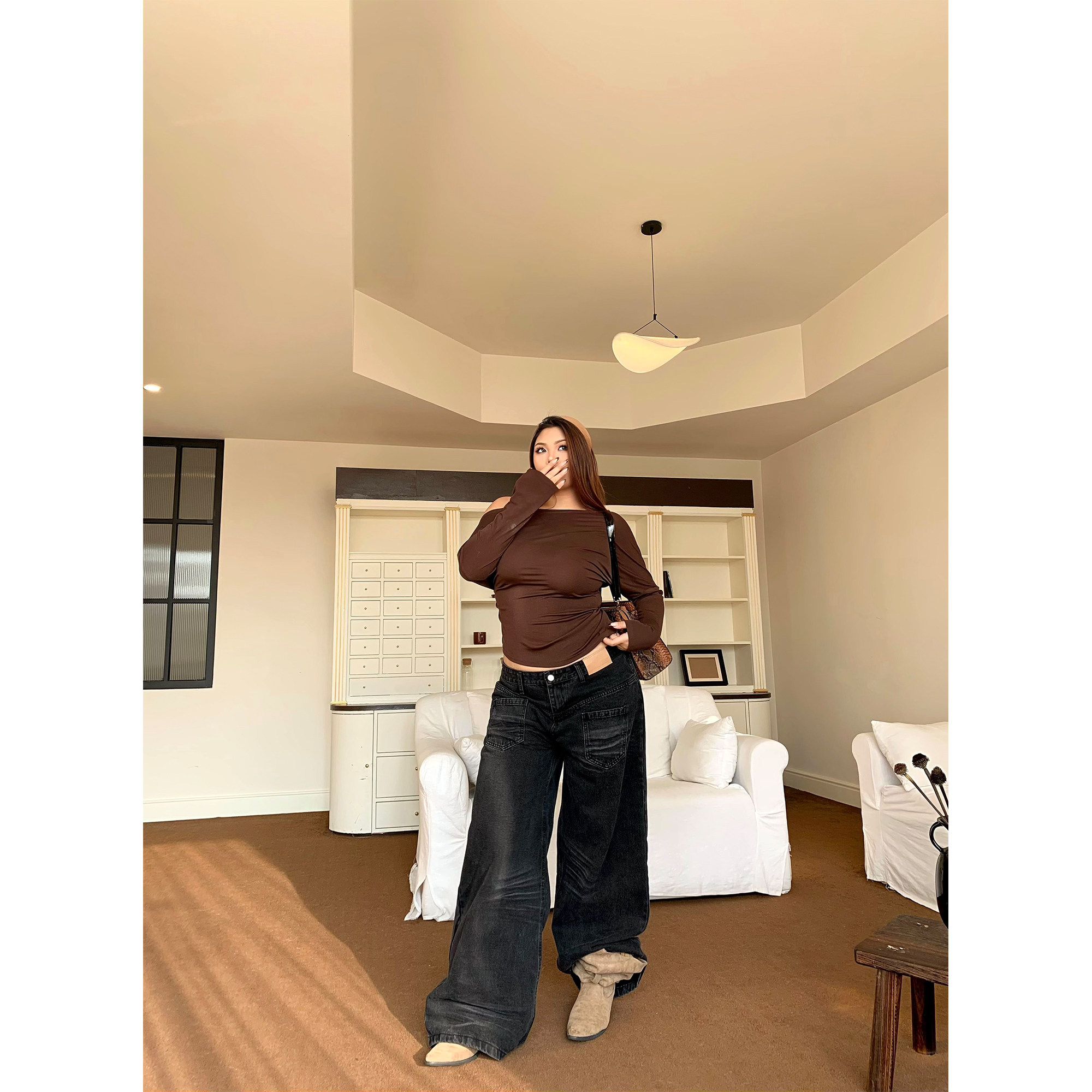 男女潮牌高级感香蕉休闲长裤 复古原色廓形弯刀牛仔裤 INKNOTS美式