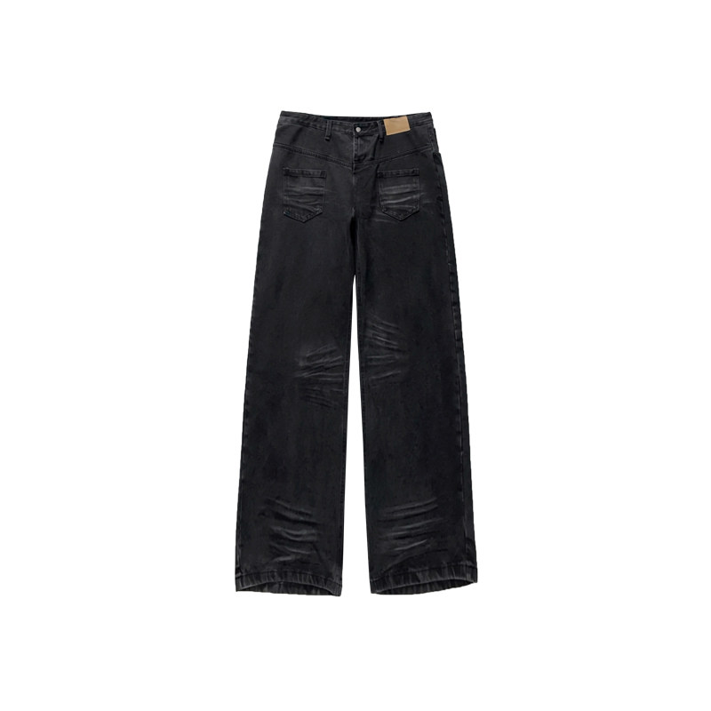 男潮牌宽松高街百搭阔腿长裤 复古解构做旧水洗牛仔裤 悟空有货美式