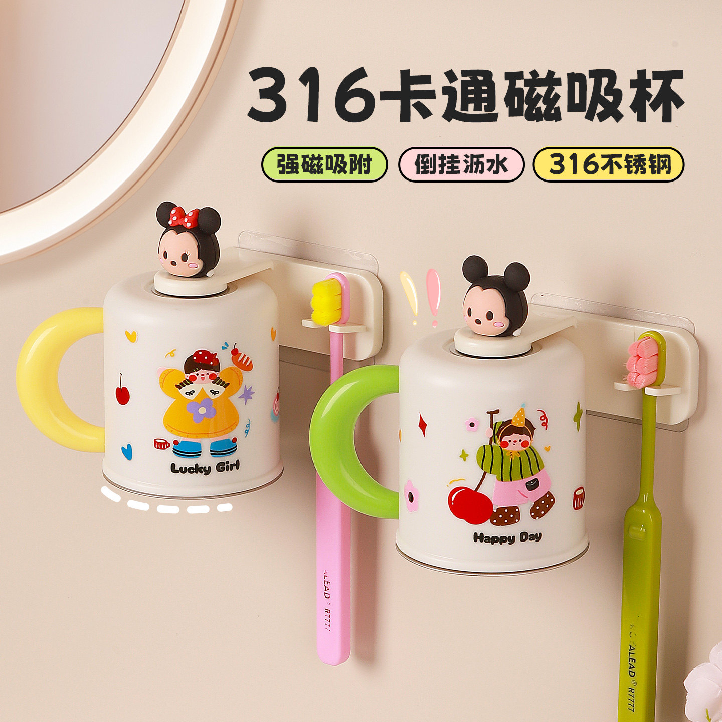 磁吸式 刷牙杯家用倒挂电动牙刷挂架免打孔 漱口杯牙刷置物架壁挂式