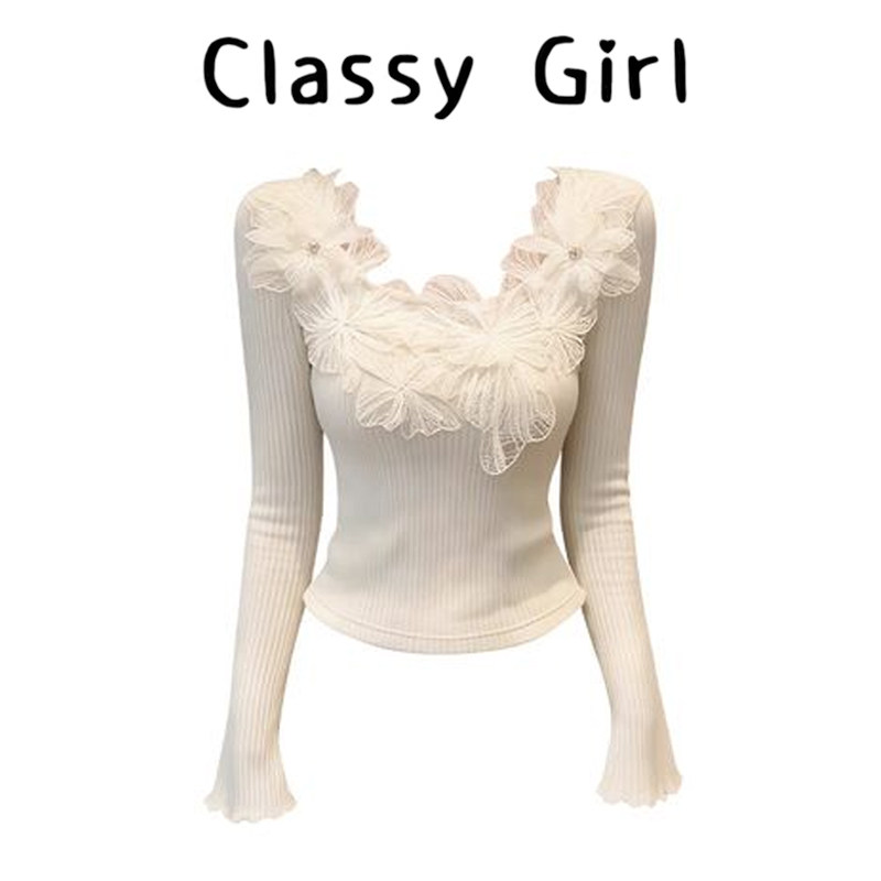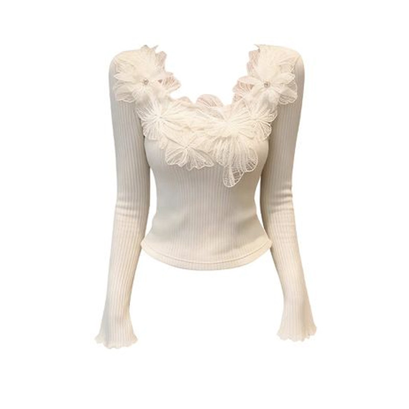 蝴蝶U领正肩喇叭袖 女2026秋冬高级感气质修身 打底衫 上衣春 针织衫