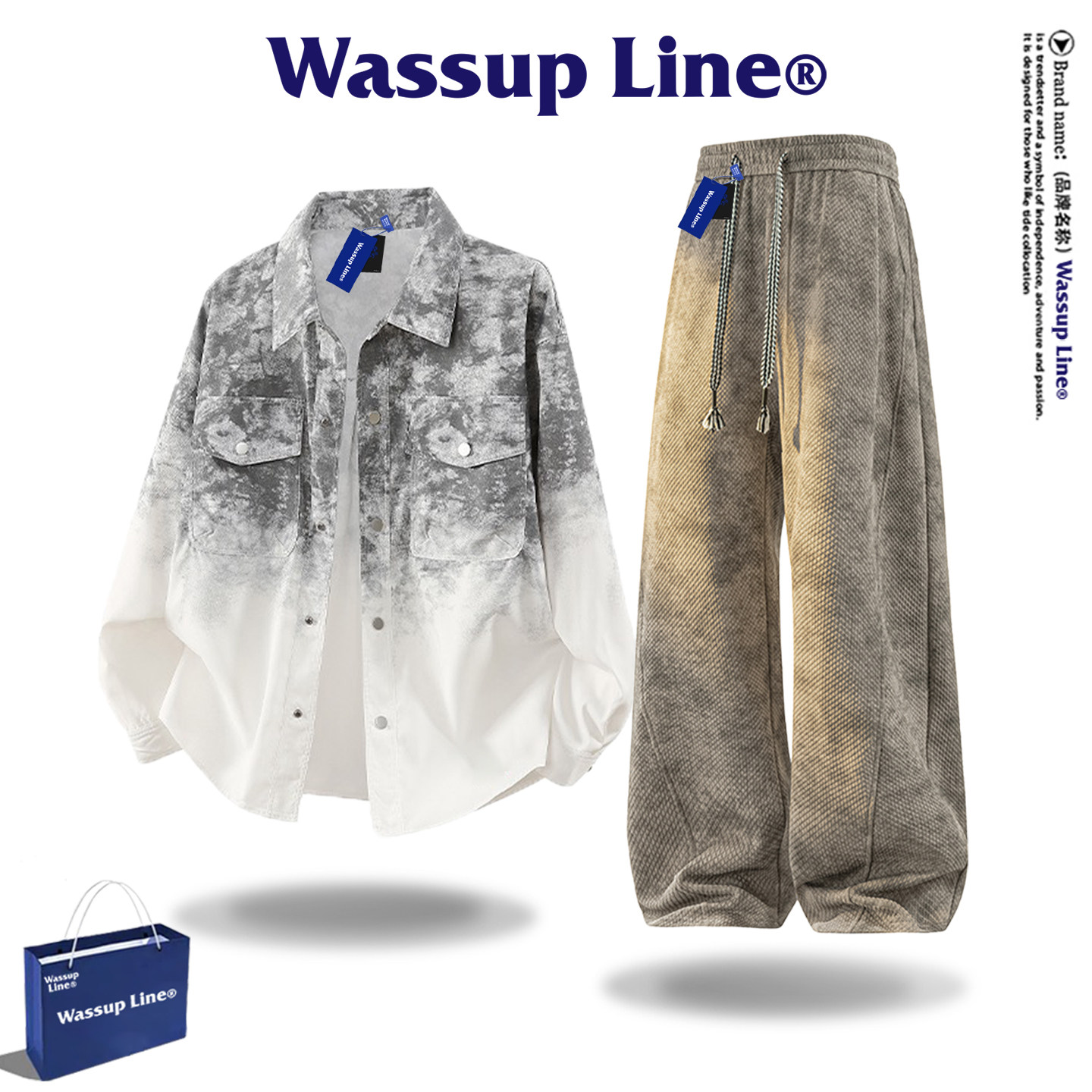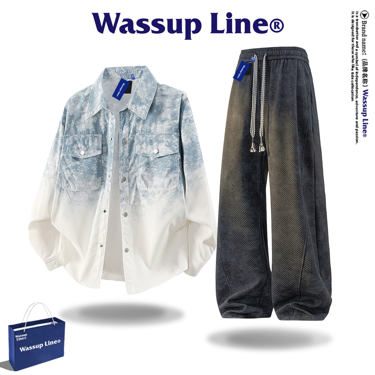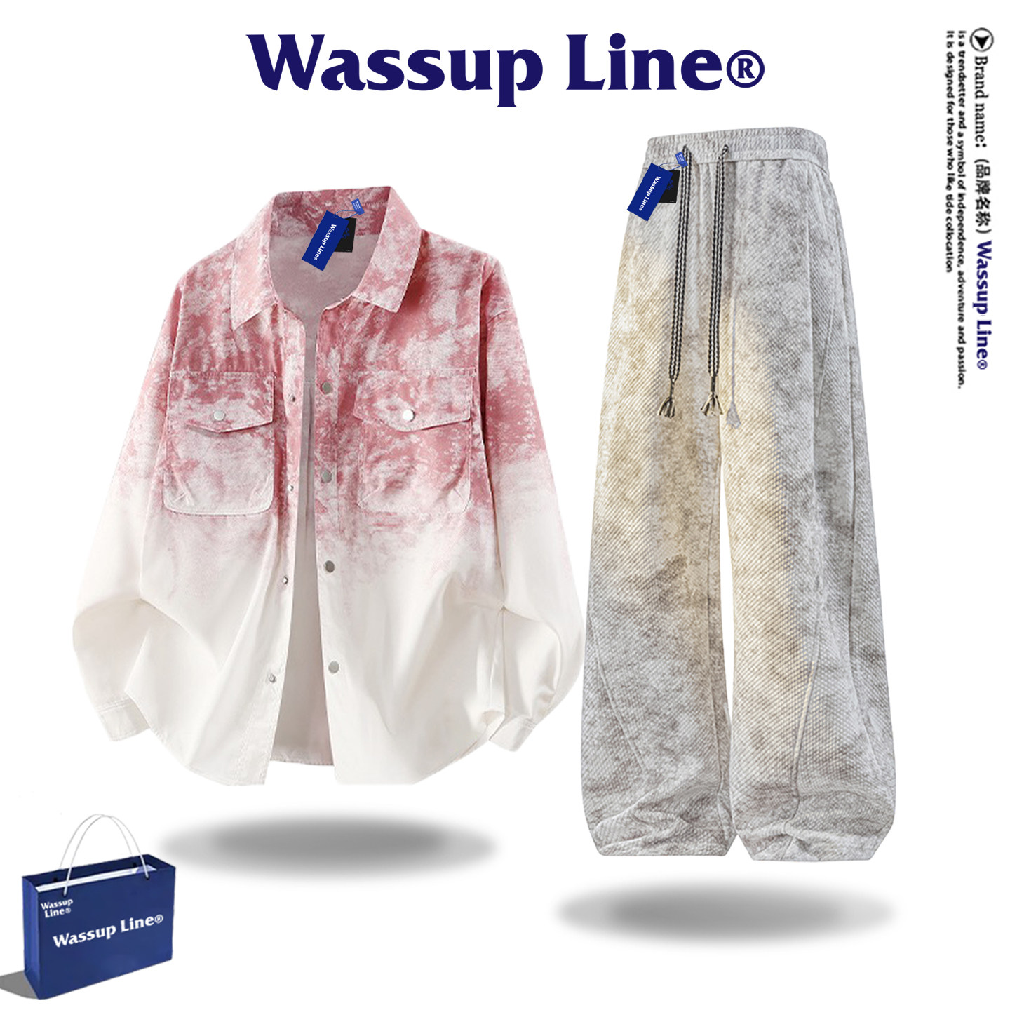 为您提供商品套装 衬衫 Line潮牌扎染长袖 渐变衬衣两件套男 美式 春季 男款 WASSUP的详细介绍,
