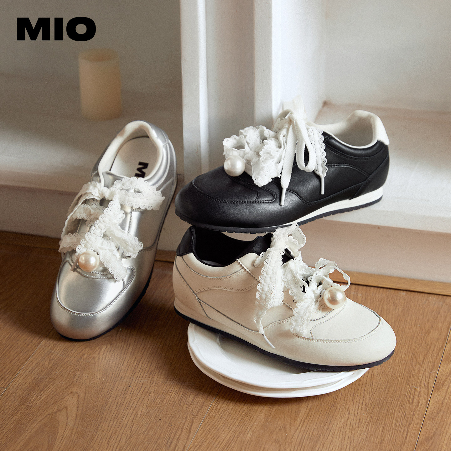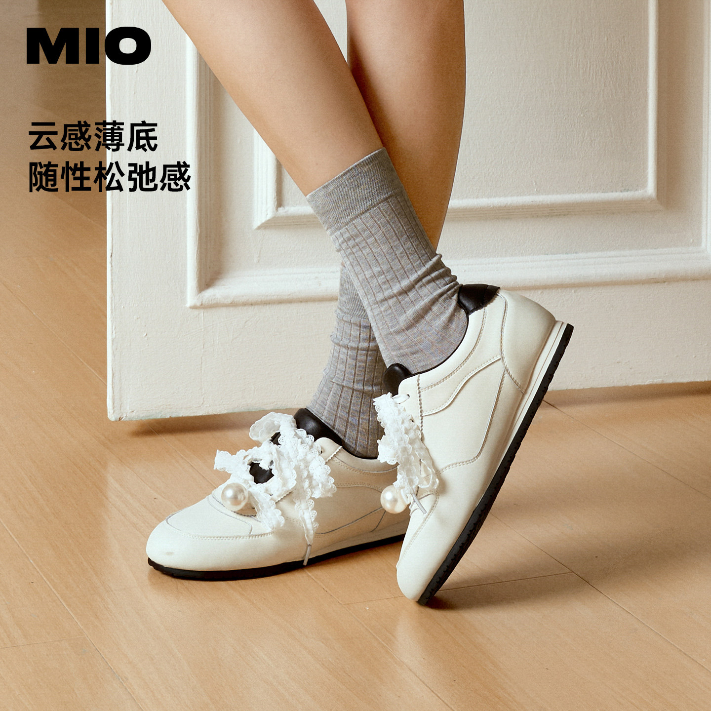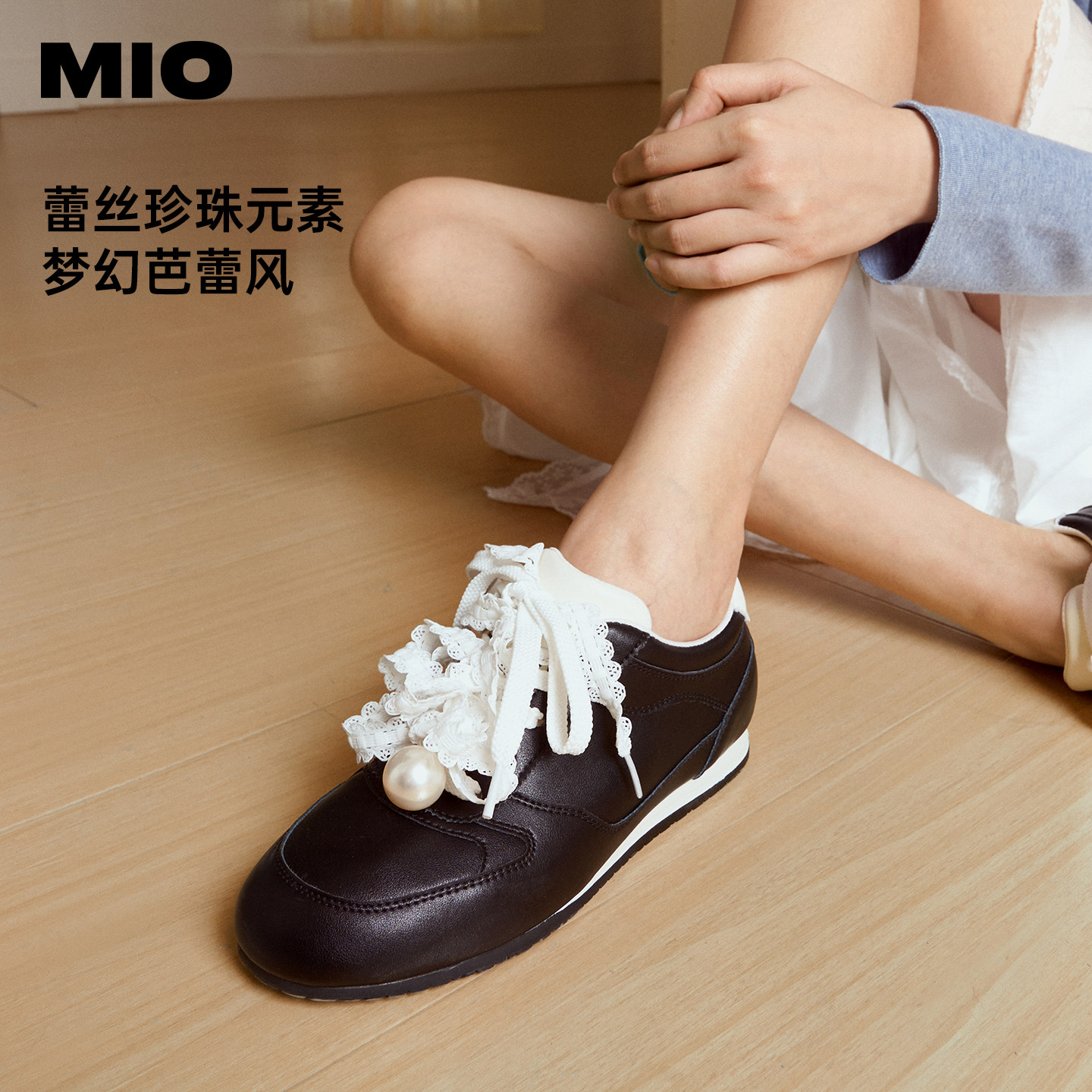 为您提供商品薄底珍珠单鞋 新款 2026春季 芭蕾皮鞋 女鞋 运动鞋 MIO米奥蕾丝德训鞋的详细介绍,