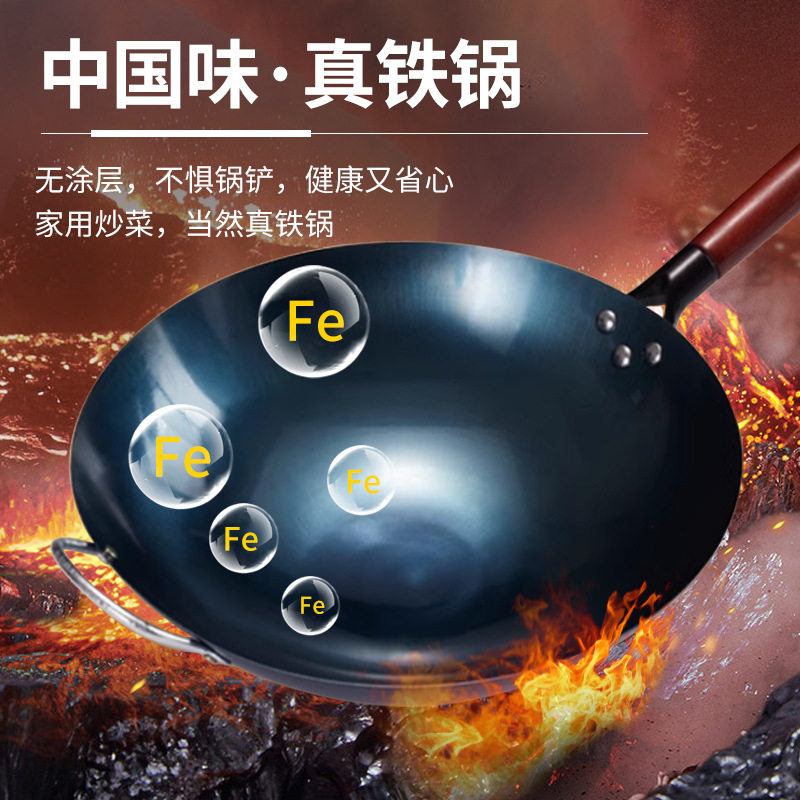 炒锅家用不粘锅无涂层燃气灶适用 章丘炒菜锅传统铁锅官方旗舰老式