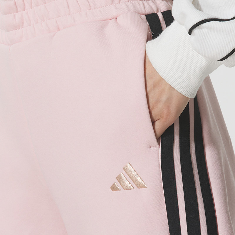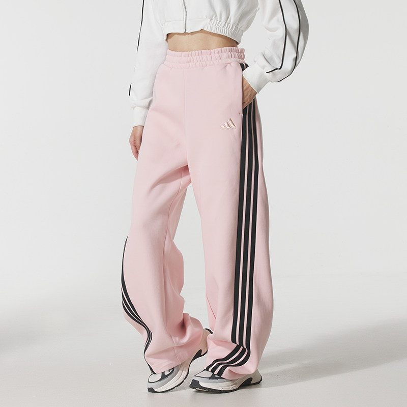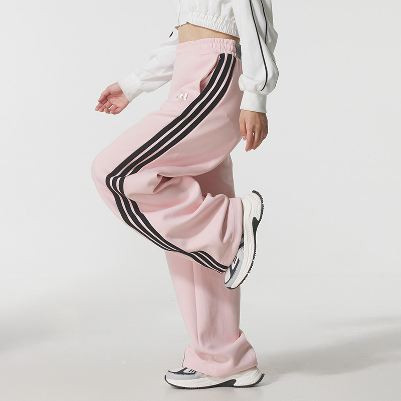 三条纹宽松运动舞蹈裤 子女KB7602 秋冬新款 阿迪达斯粉色香蕉裤