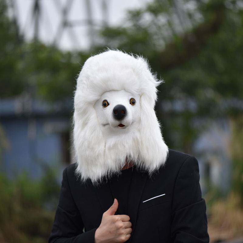 动物面具贵宾犬乳胶头套宠物狗哈士奇万圣节道具派对网红拍照道具由