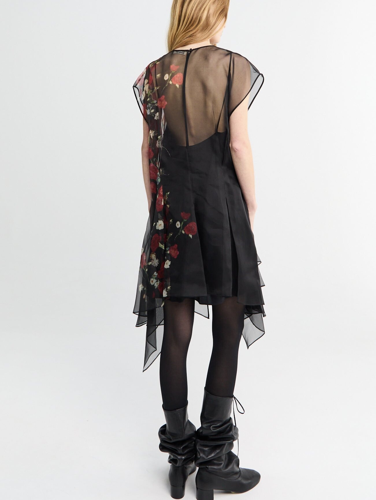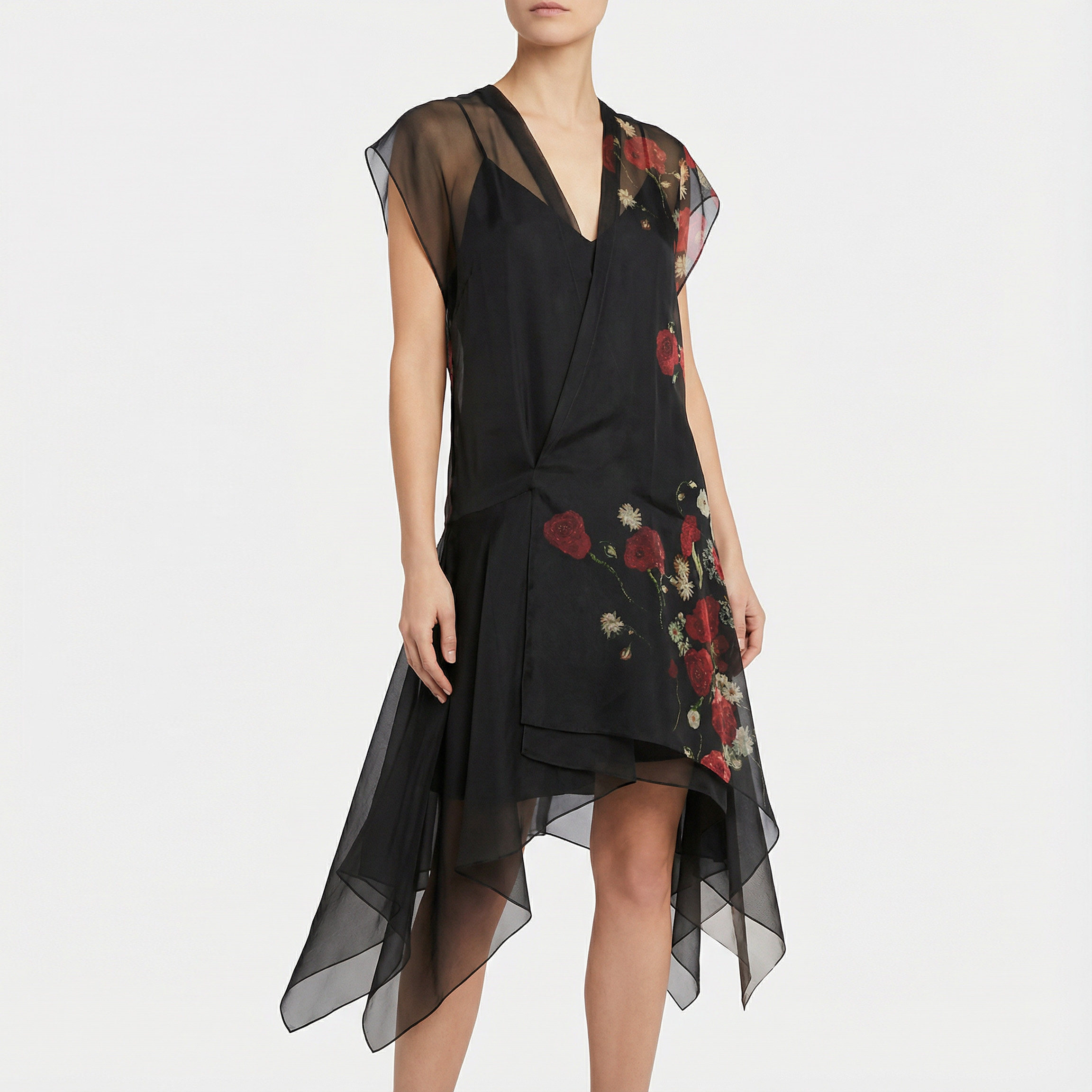 女装 黑色短袖 2026春夏新款 两件套 印花真丝连衣裙 KHAITE由