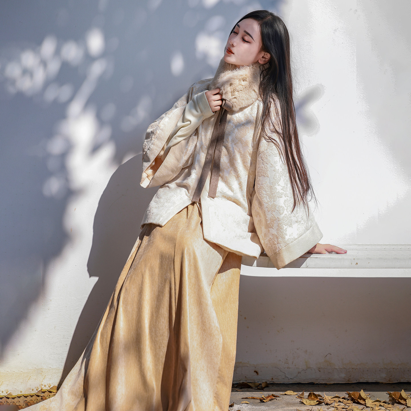 为您提供商品原创明制圆领半袖 短袄加绒口袋秋冬汉服日常加厚外套 柔华 拟梦的详细介绍,