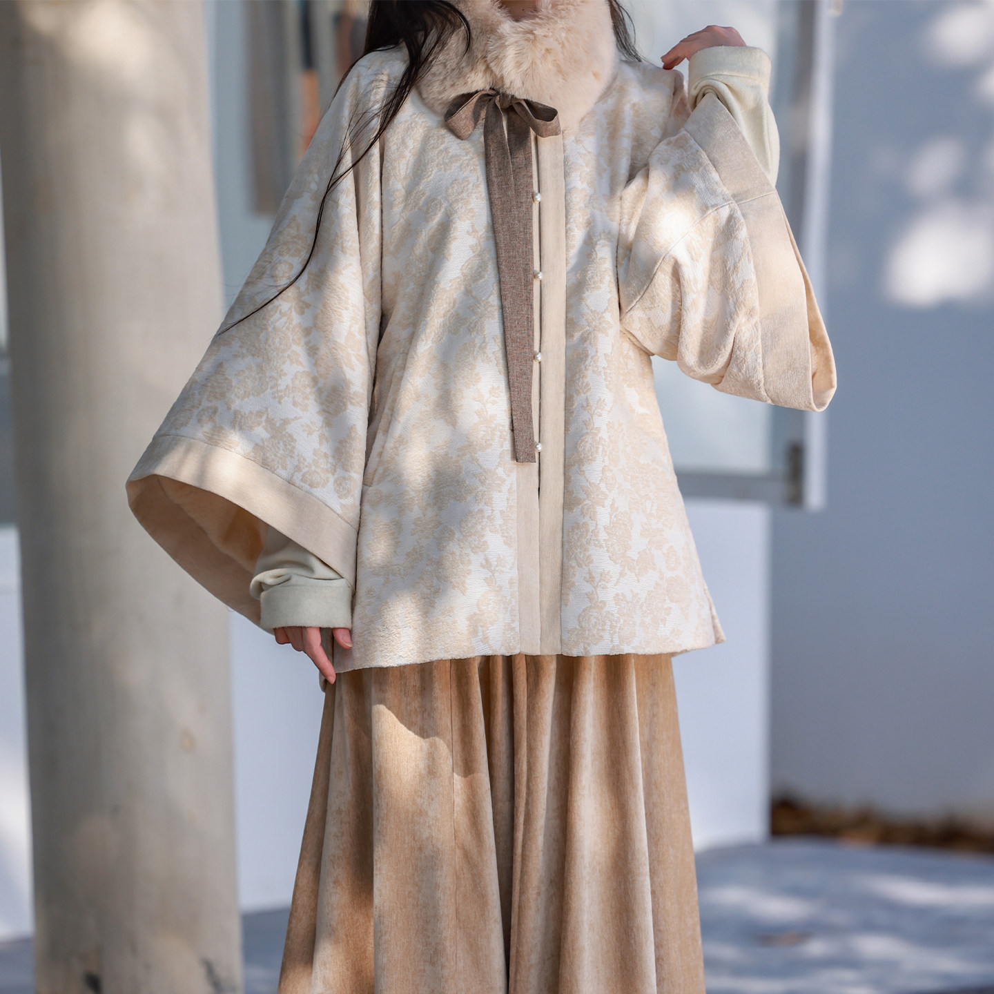 原创明制圆领半袖 短袄加绒口袋秋冬汉服日常加厚外套 柔华 拟梦