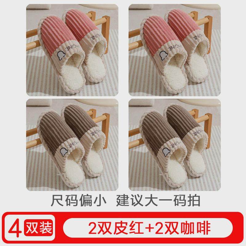 女待客人用室内家居家用保暖加绒情侣棉拖男新款 棉拖鞋 4双秋冬季由