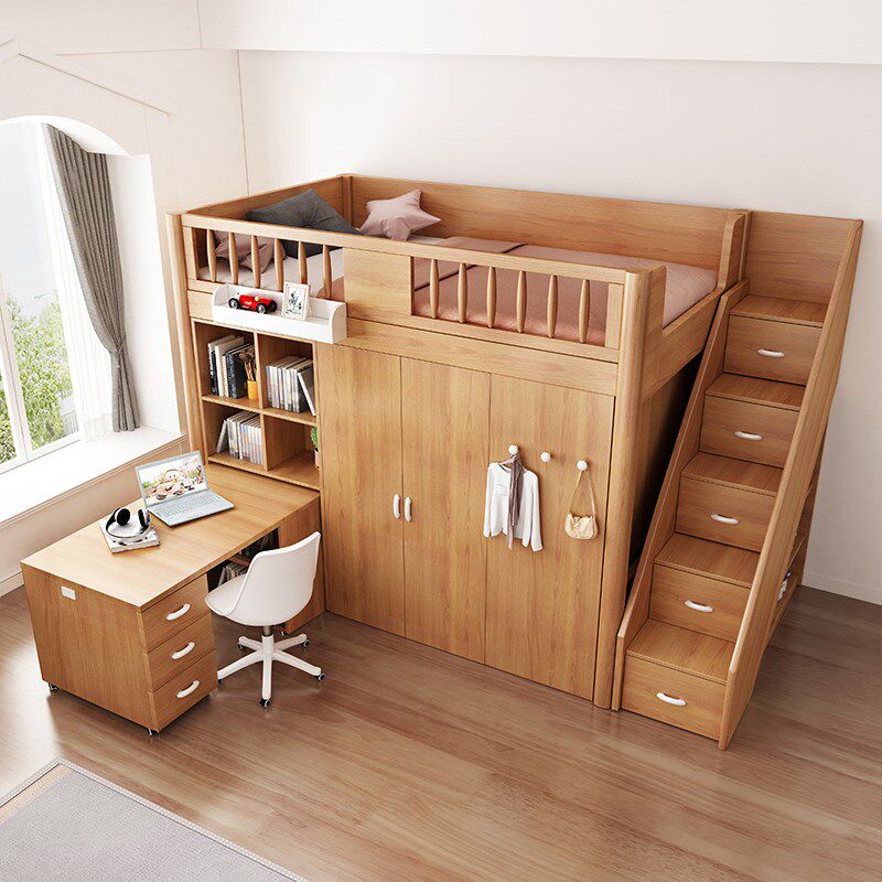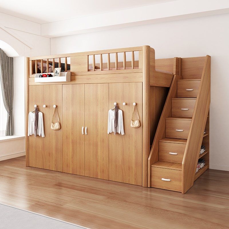 儿童床上床下柜多功能组合书桌床一体高低床收纳储物双层床衣帽间