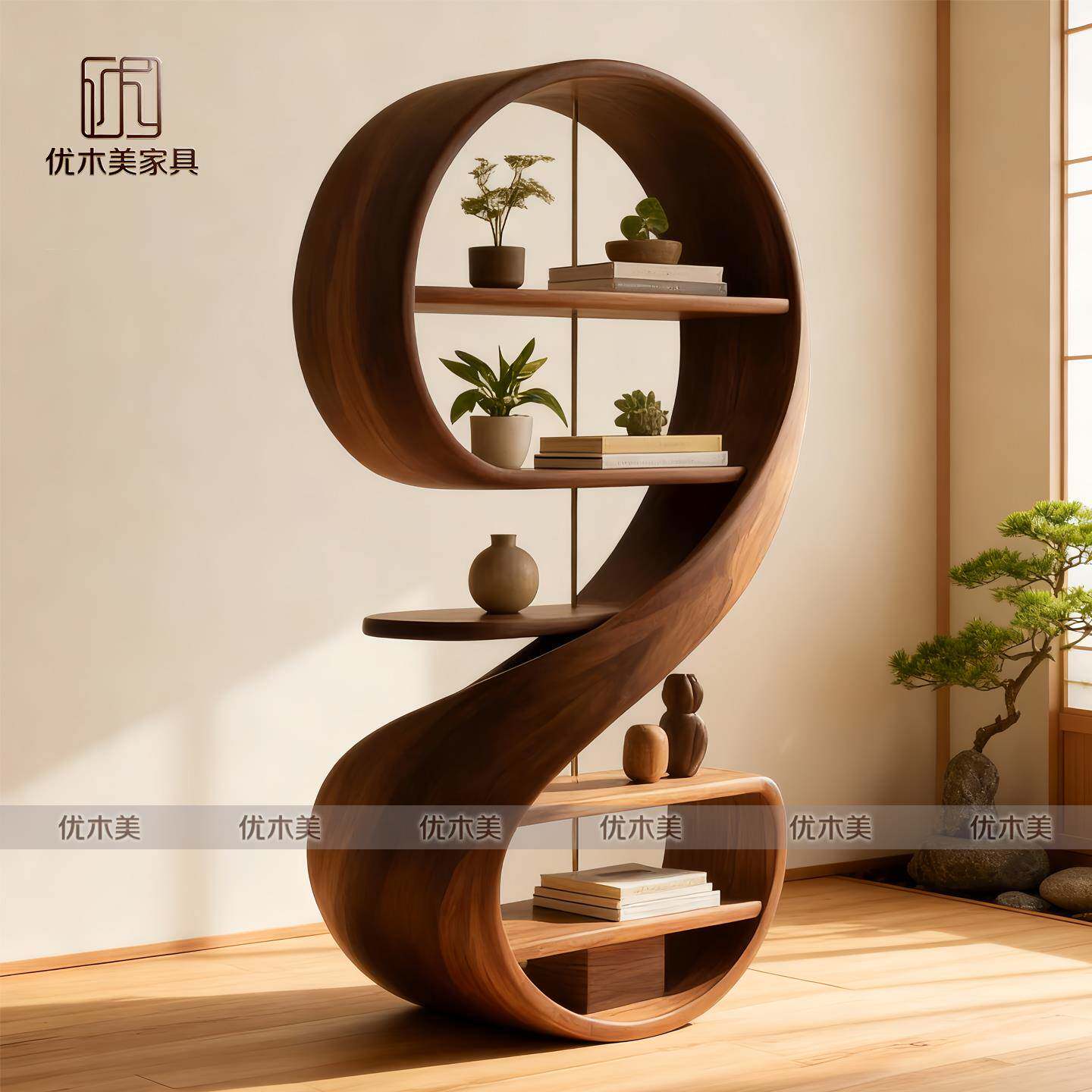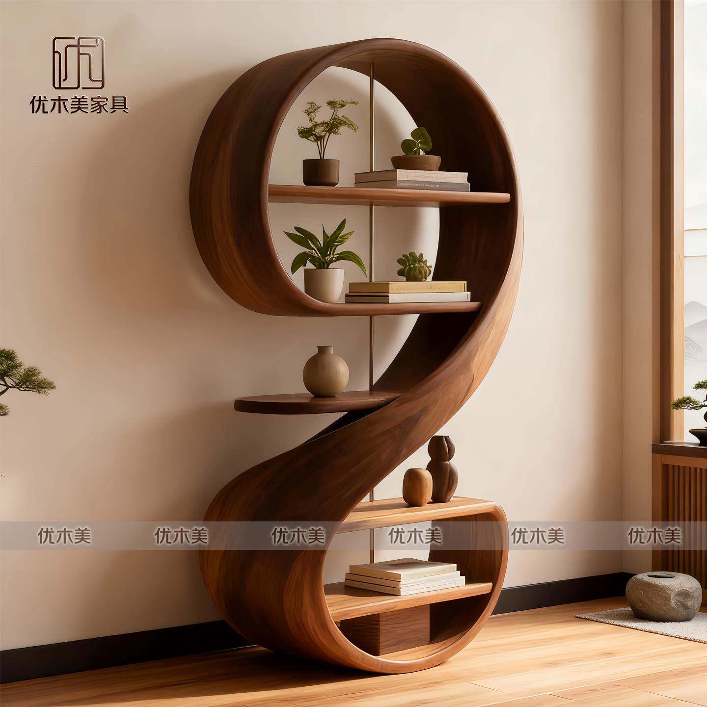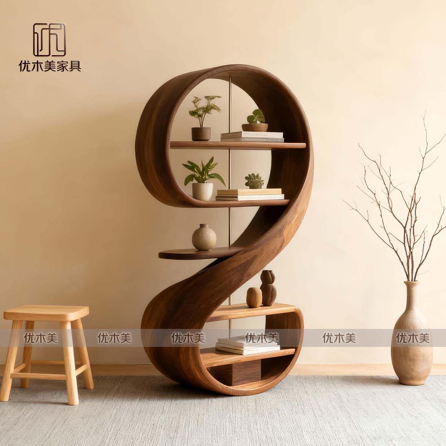 为您提供商品新中式 美学实木客厅置物架书架多宝阁 北美黑胡桃木音符博古架宋式的详细介绍,