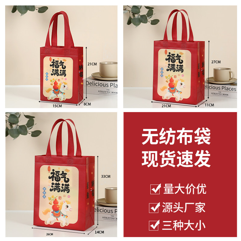 为您提供商品袋环保袋子 马年福气满满无纺布覆膜手提袋加厚礼品袋新年礼物包装的详细介绍,