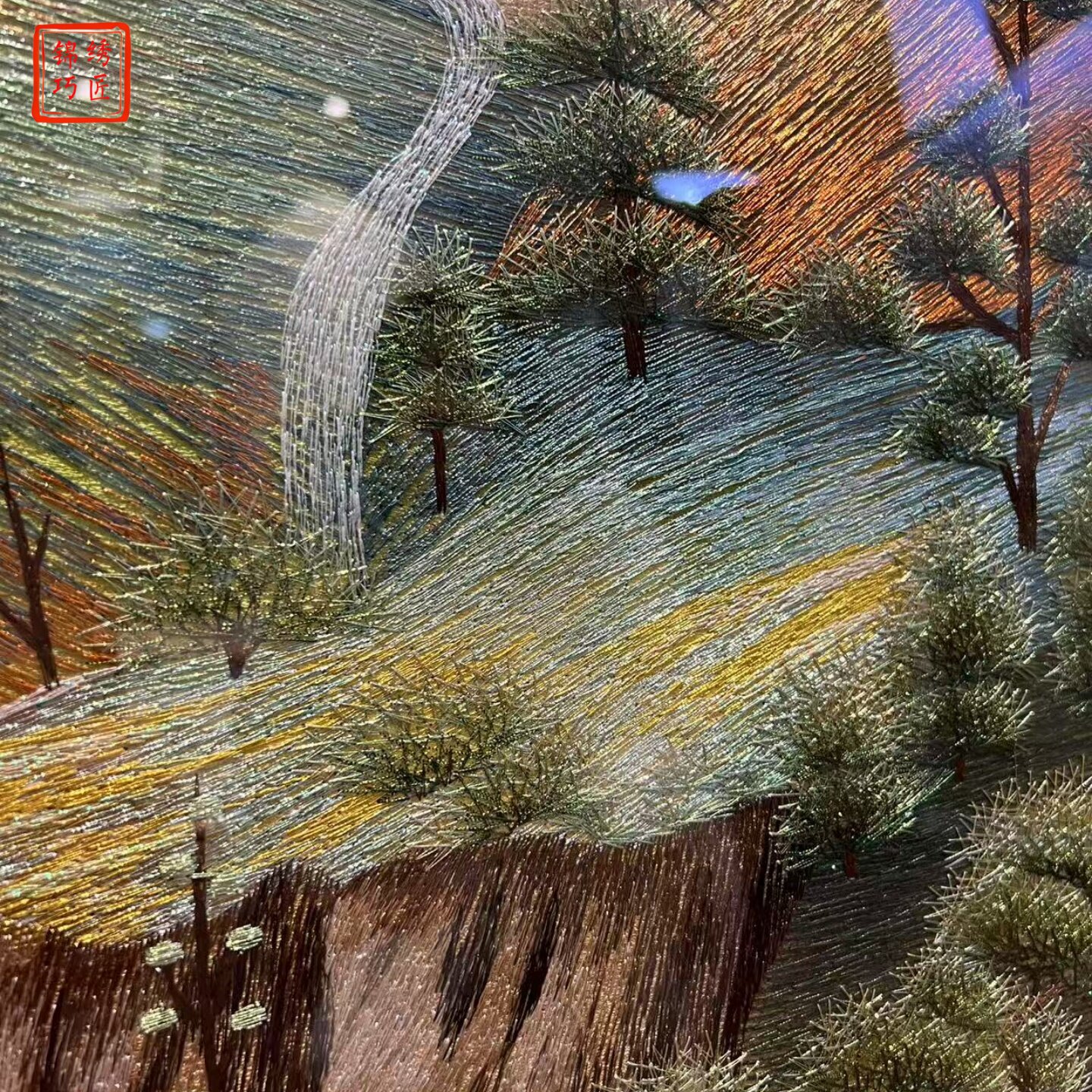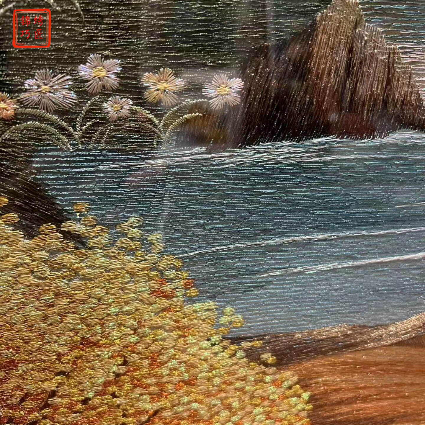 饰画家有靠山织锦绣玄关挂画苏绣楼梯间壁画 背靠金山刺绣玄关装