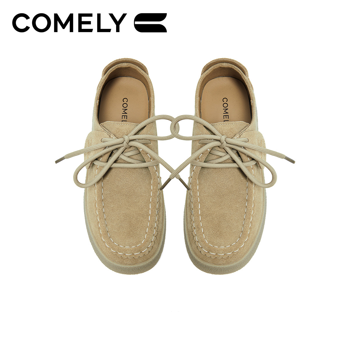 英伦豆豆鞋 百思图26春新款 绒面羊皮鞋 miu系乐福鞋 UXE01AA6 女单鞋