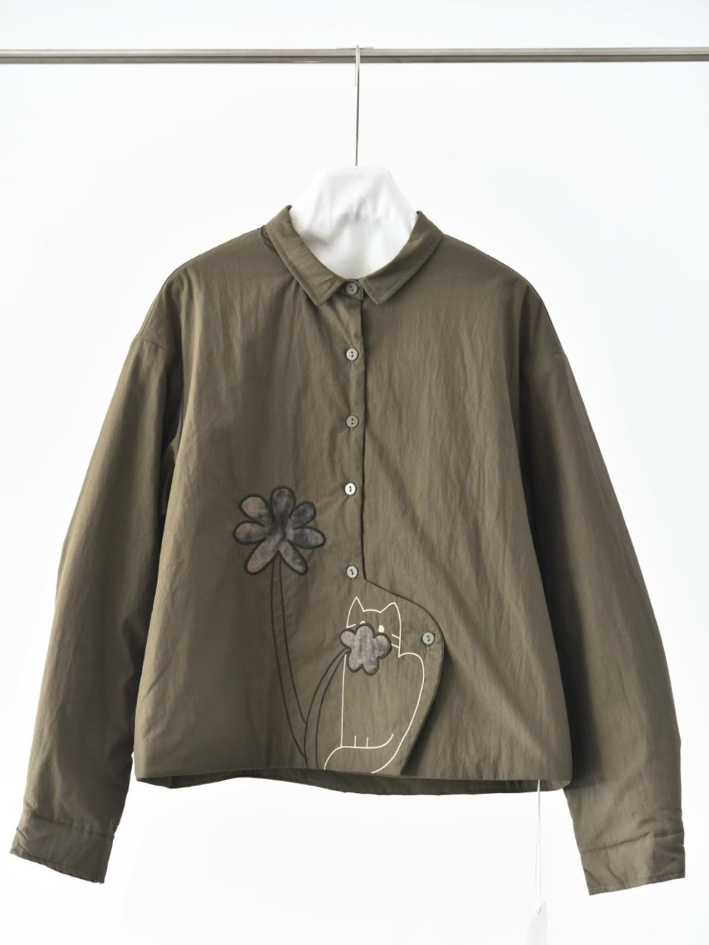 轻便夹棉保暖棉衣慵懒刺绣轻复古好看棉服文艺外套 童颜阁秋冬个性