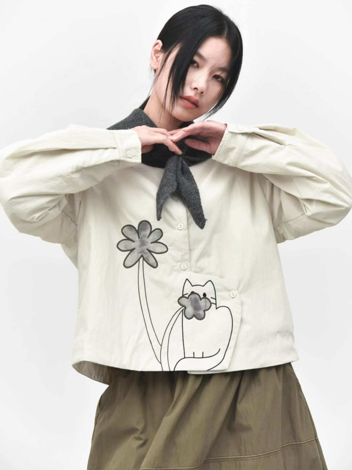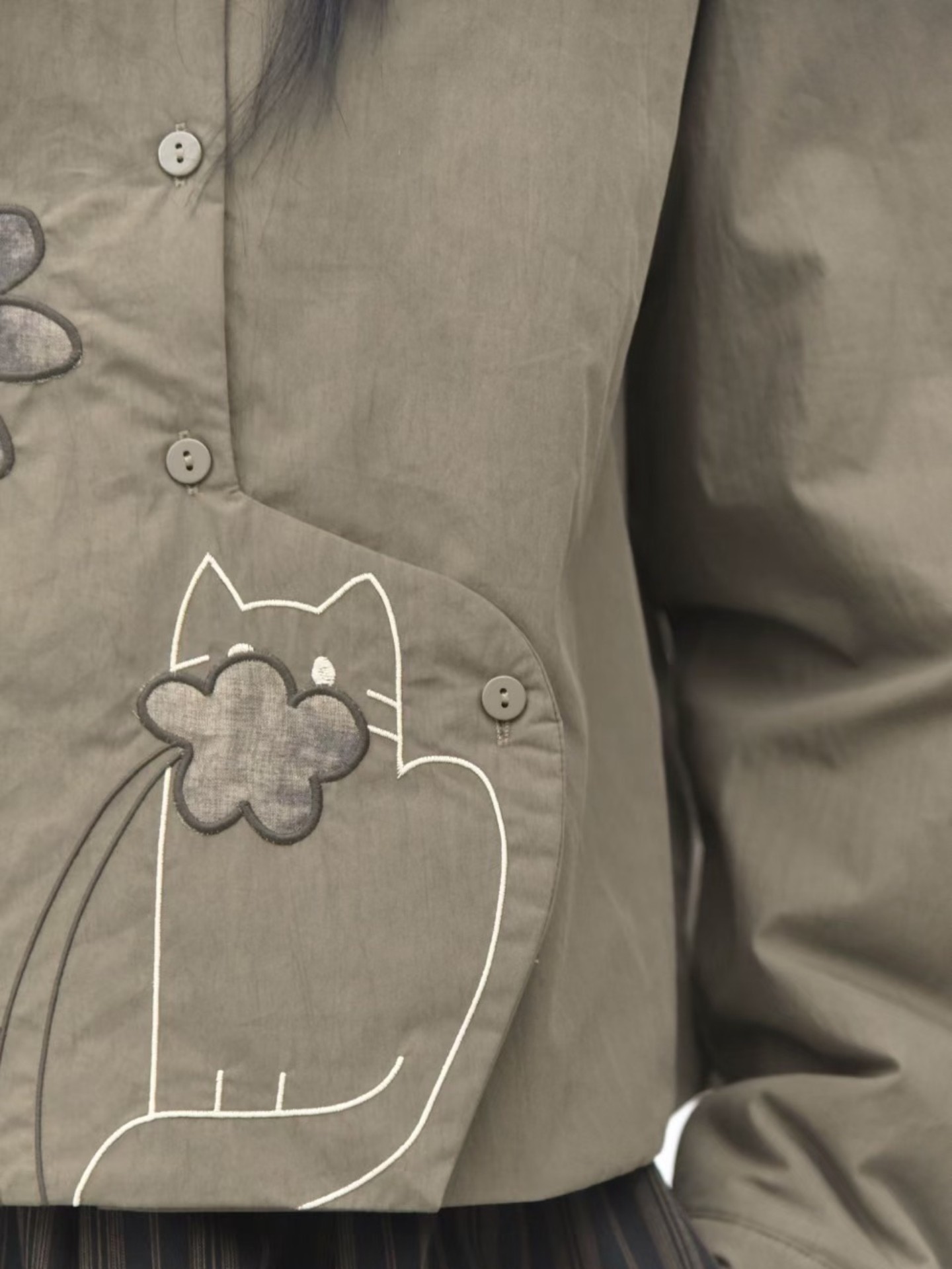 轻便夹棉保暖棉衣慵懒刺绣轻复古好看棉服文艺外套 童颜阁秋冬个性由