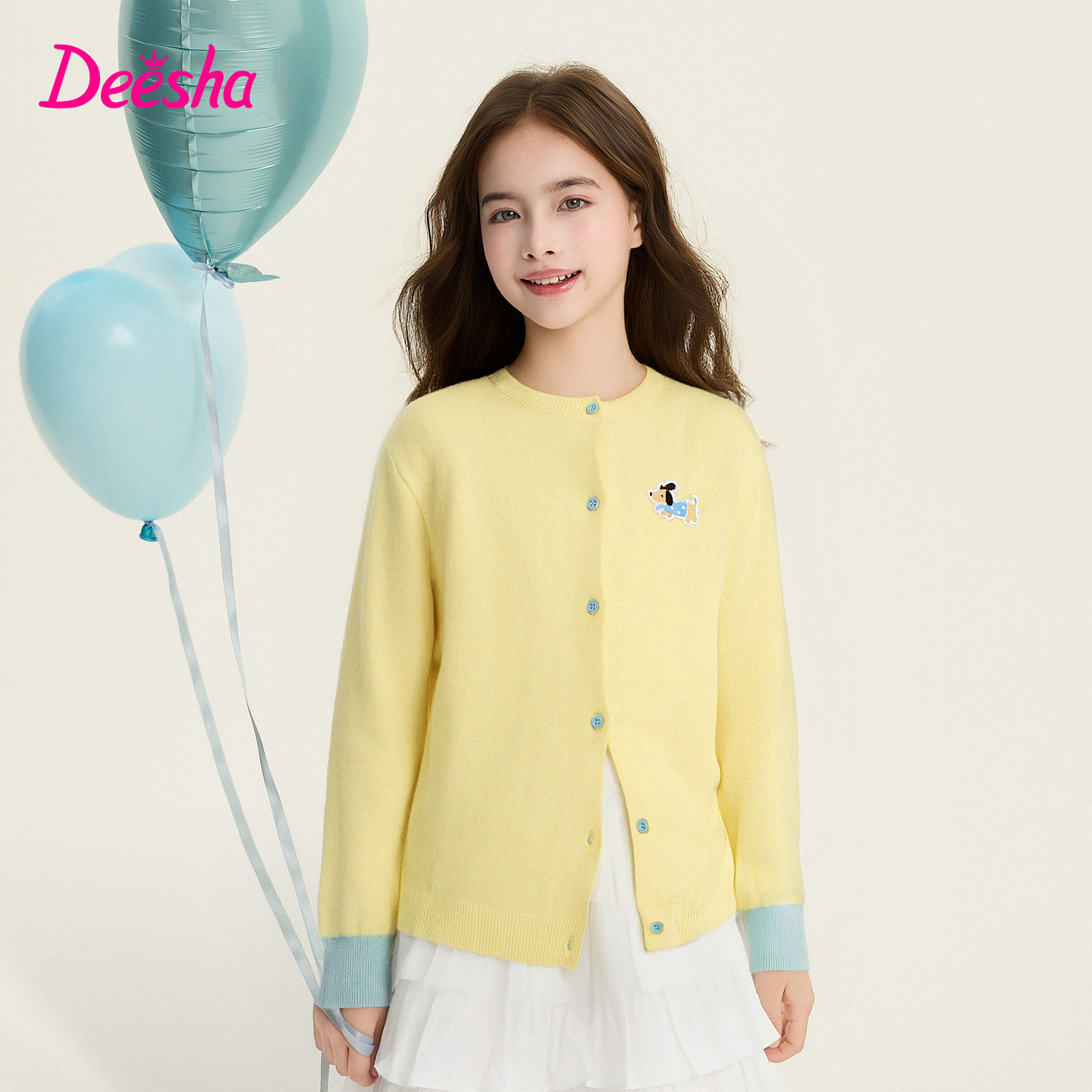 笛莎官方旗舰童装 春季 新款 大童女孩儿童纯棉毛衣外套 女童针织开衫