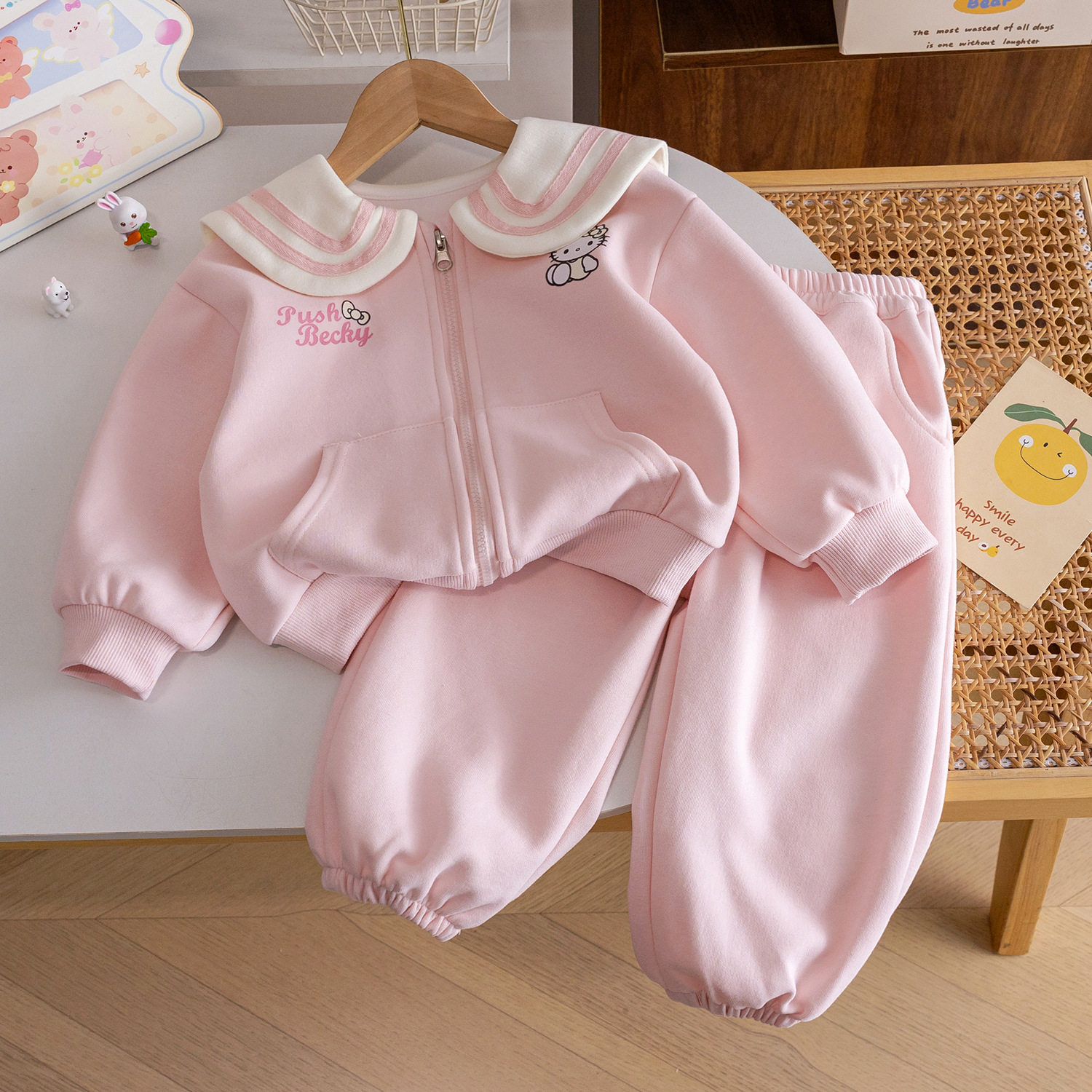 布丁哈鲁童装 女童洋气外套2026春秋新款 儿童宽松运动套装 春装