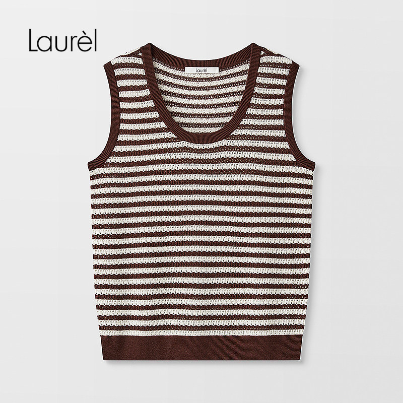 Laurel劳芮26夏新款 条纹针织背心LWL372M08100 桑蚕丝亚麻混纺由