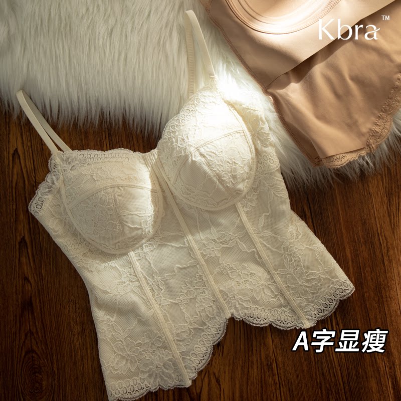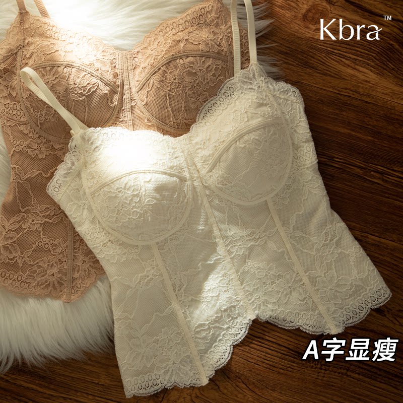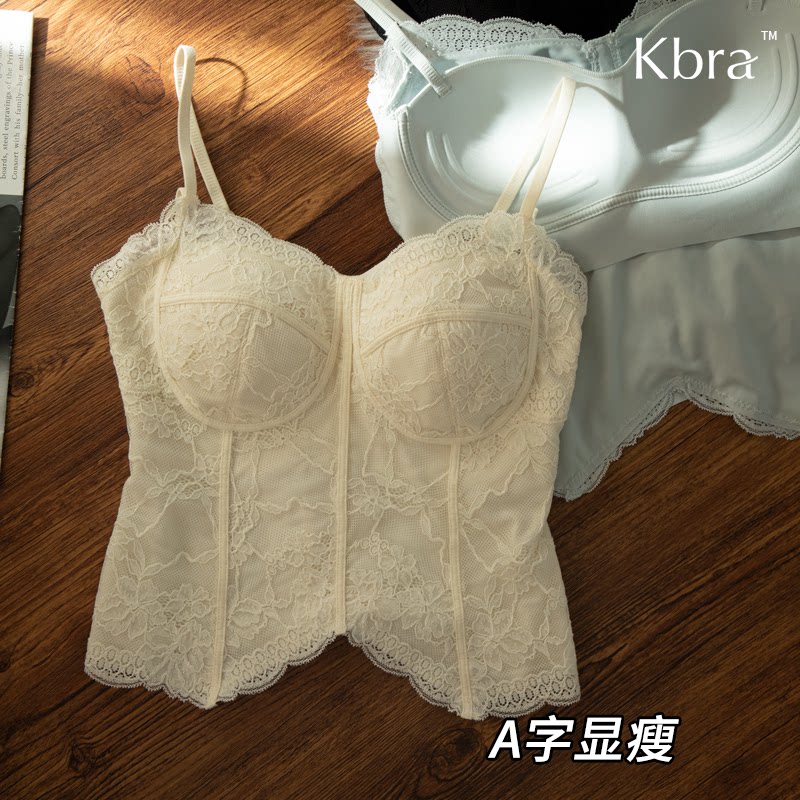 Kbra蕾丝鱼骨吊带背心女夏季 显瘦外穿打底上衣 带胸垫内搭修身