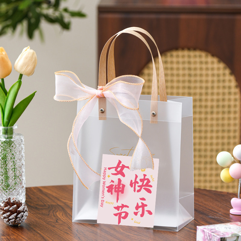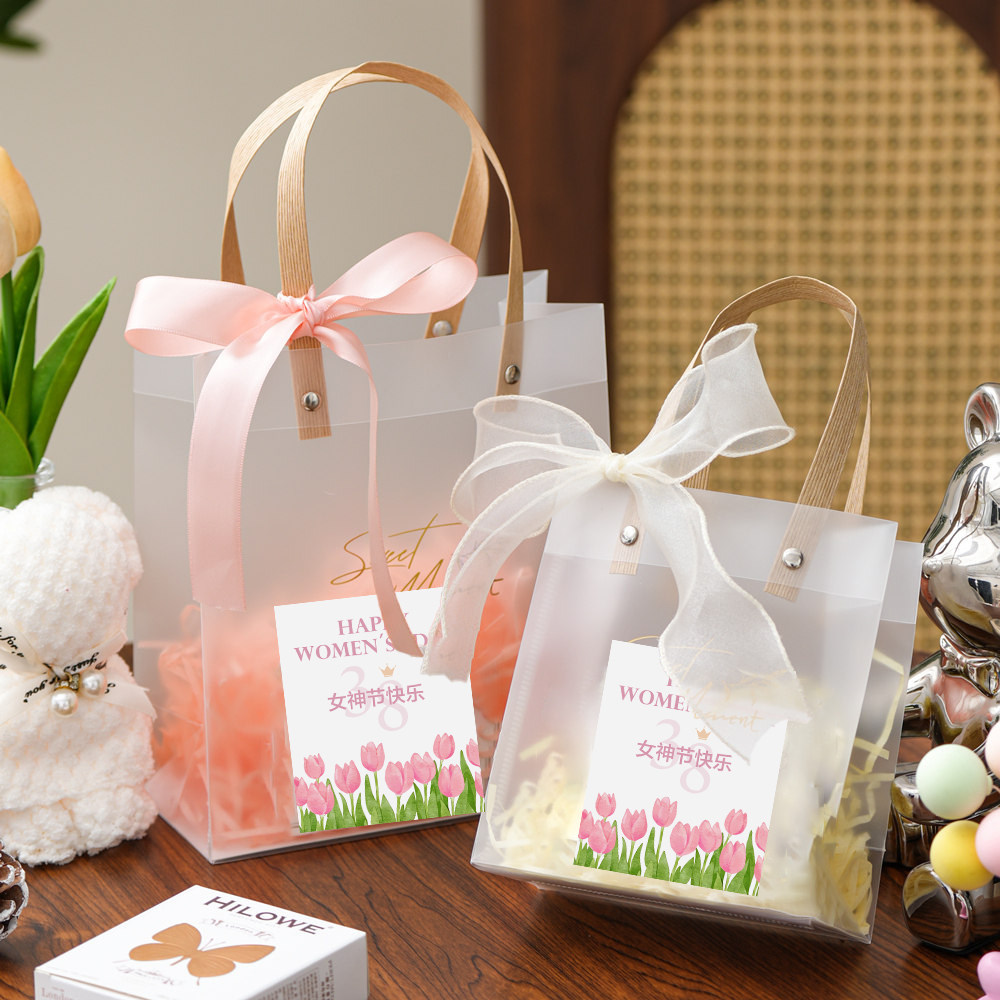 伴手礼袋高级感 三八女神节礼品袋蝴蝶结透明手提38妇女节礼物包装