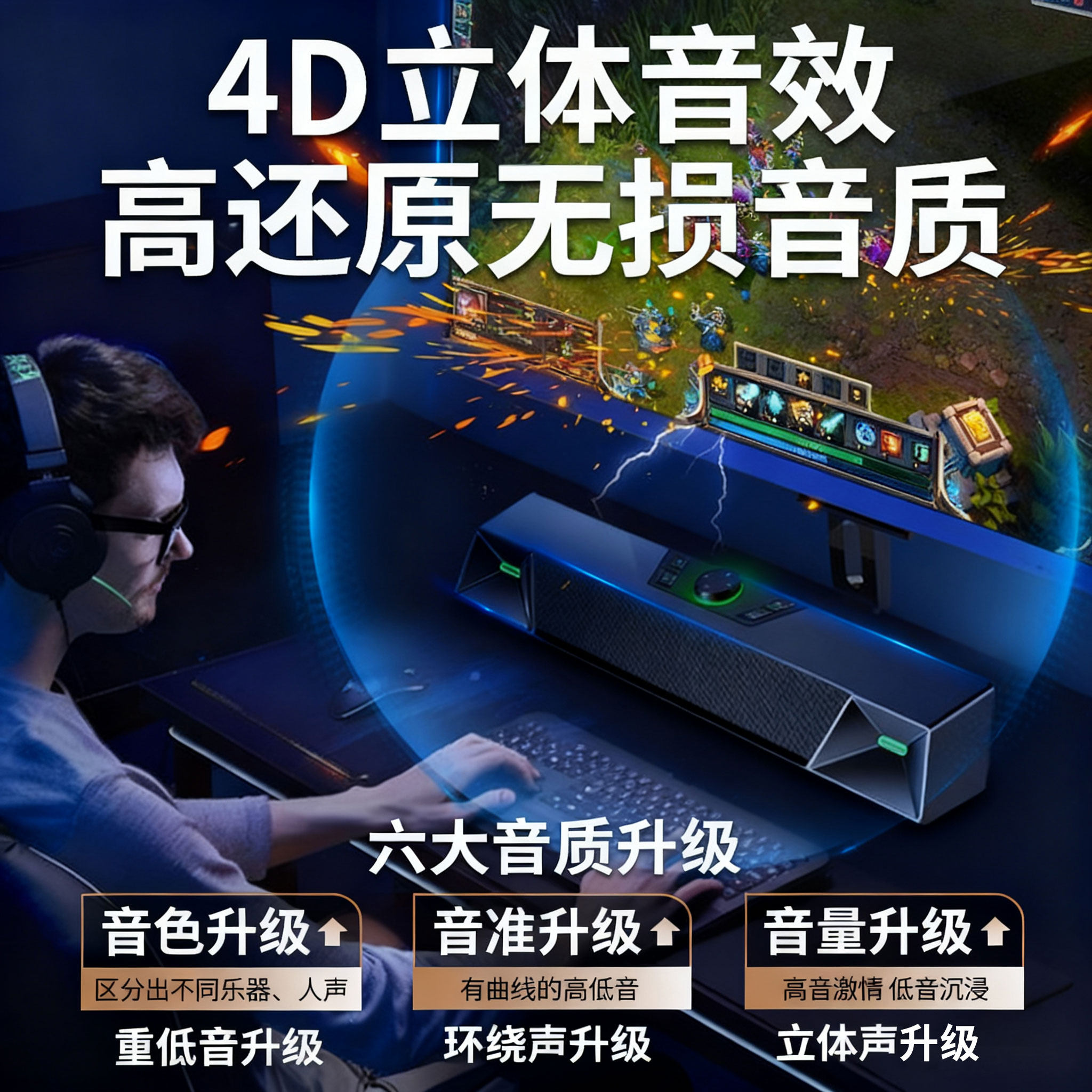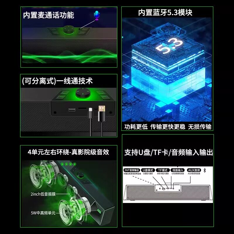 桌面usb电竞蓝牙有线长条喇叭麦克风多媒体音箱 电脑音响家用台式