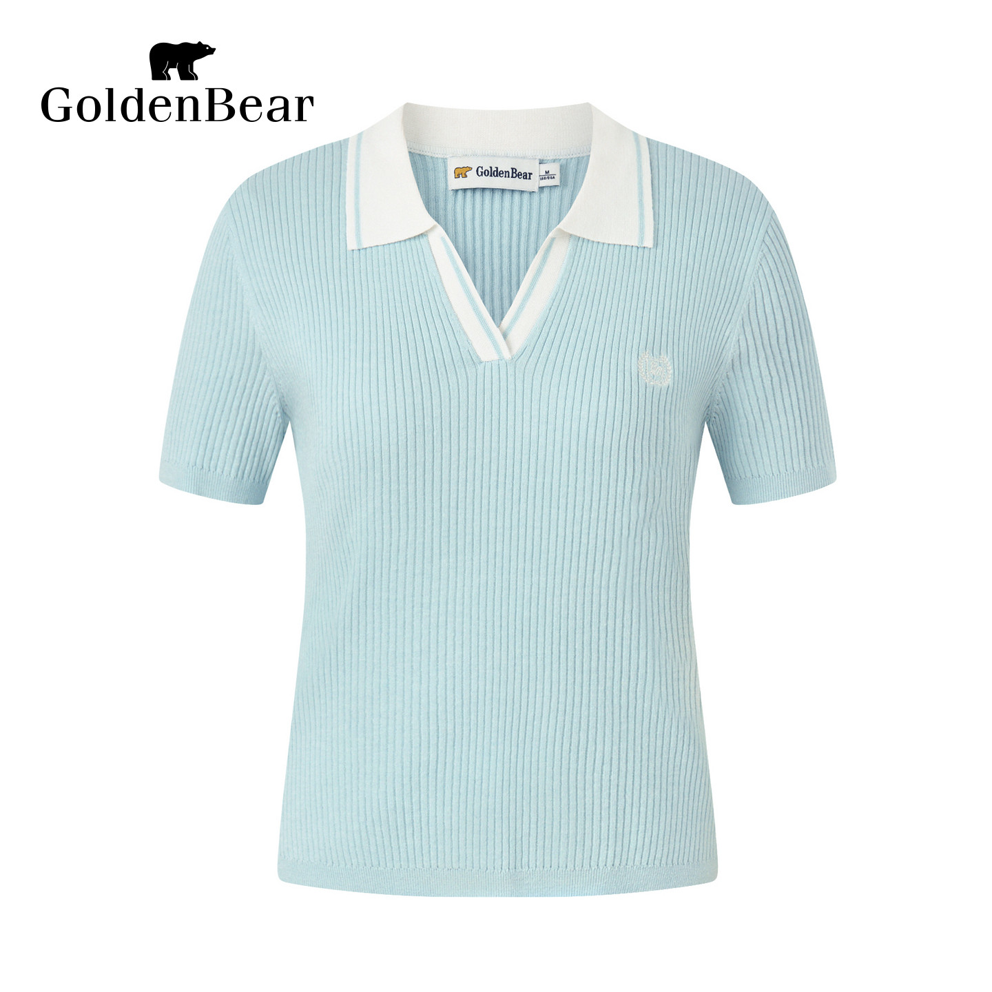 BEAR GOLDEN 天爽亚麻 针织衫 2026春夏新品 翻领短袖 金熊女装