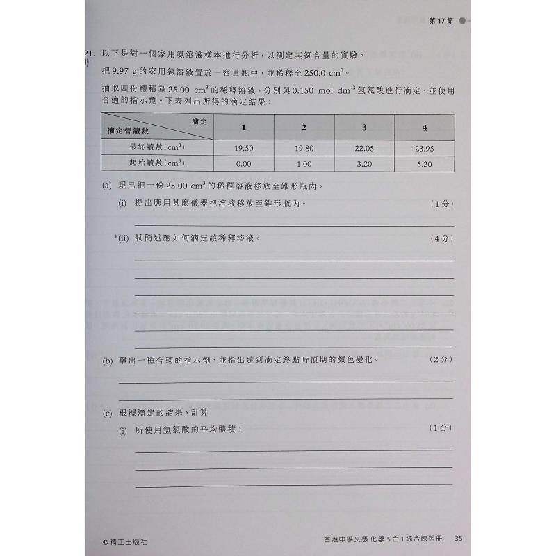 大音 HKDSE香港中學文憑化學 综合练习册1 中文英文版 文凭试dse备考题目题库 港台原版 精工化学合集 精选练习AB册由