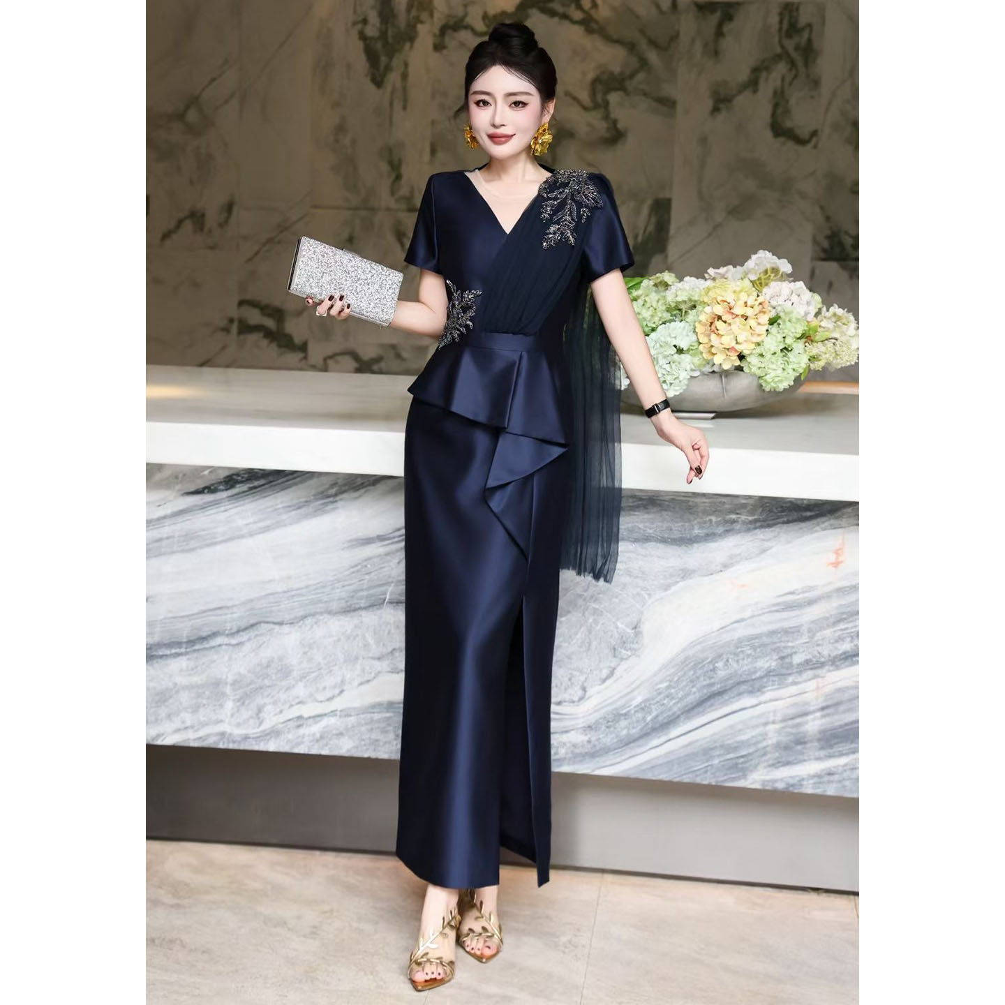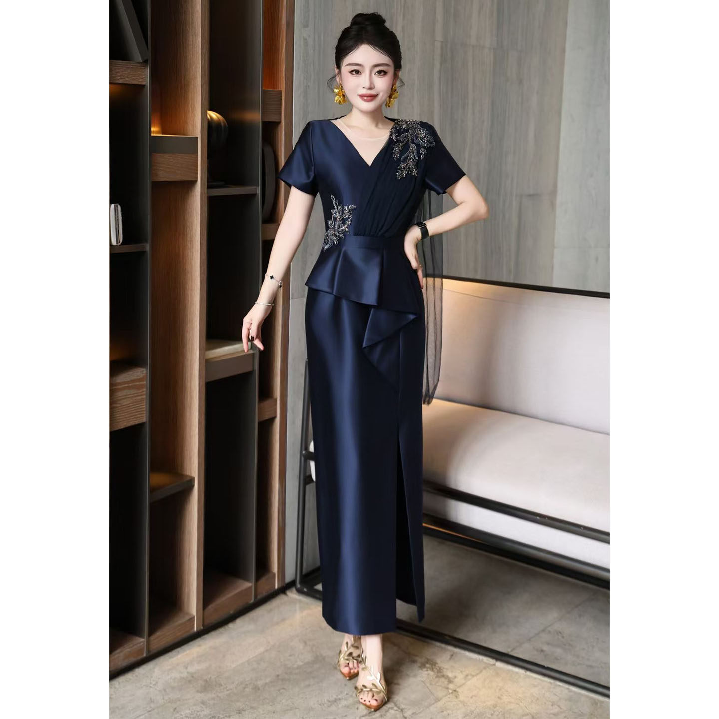 喜妈妈婚宴礼服高端轻奢高级2026新款 订婚喜服连衣裙 婆婆礼服晚装