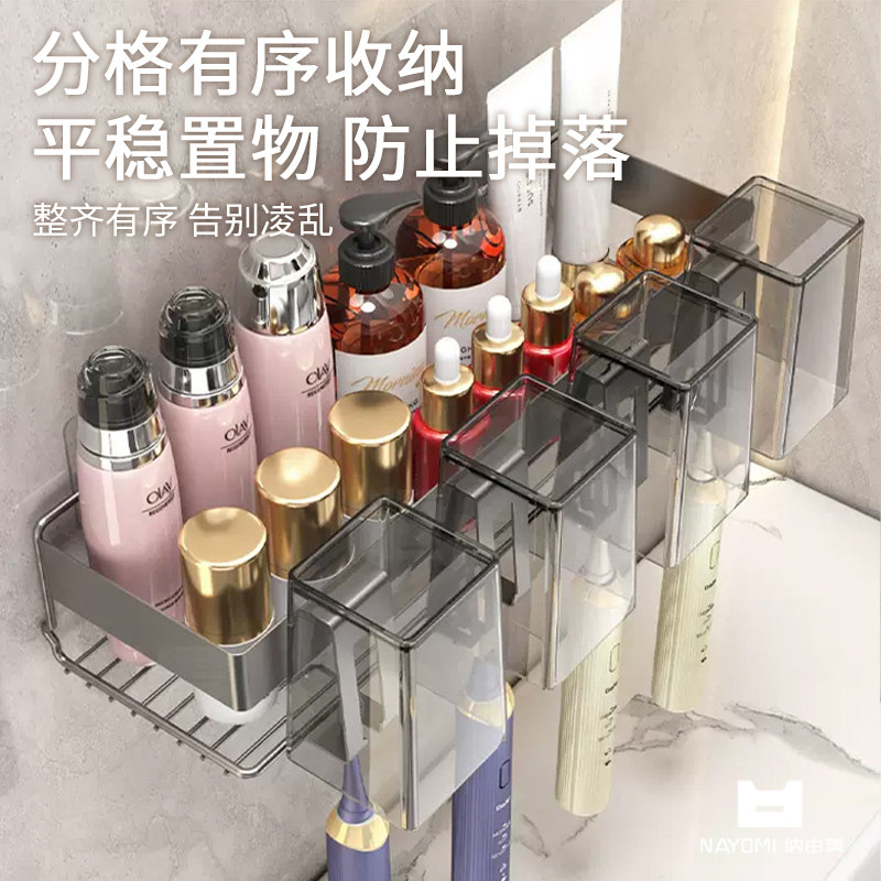 免打孔漱口杯子挂架卫生间收纳架 纳由美电动牙刷牙膏置物架壁挂式