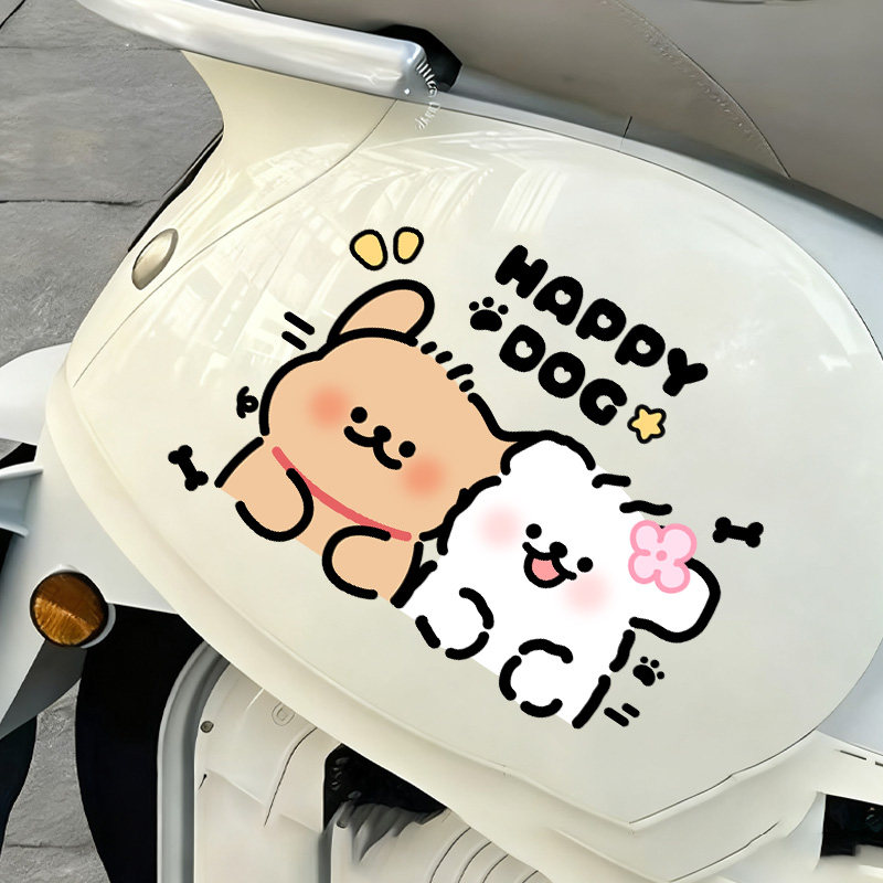 饰个性 卡通防水 饰车身划痕遮挡摩托车装 开心小狗可爱电动车贴纸装