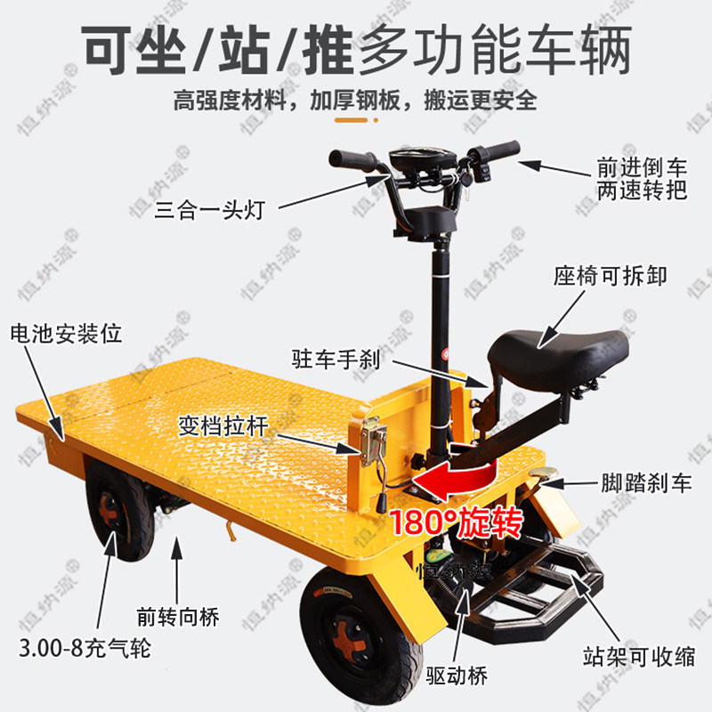 为您提供商品多功能倒骑电动四轮站架平板车工地搬运车拉货车仓库厂区运输车的详细介绍,