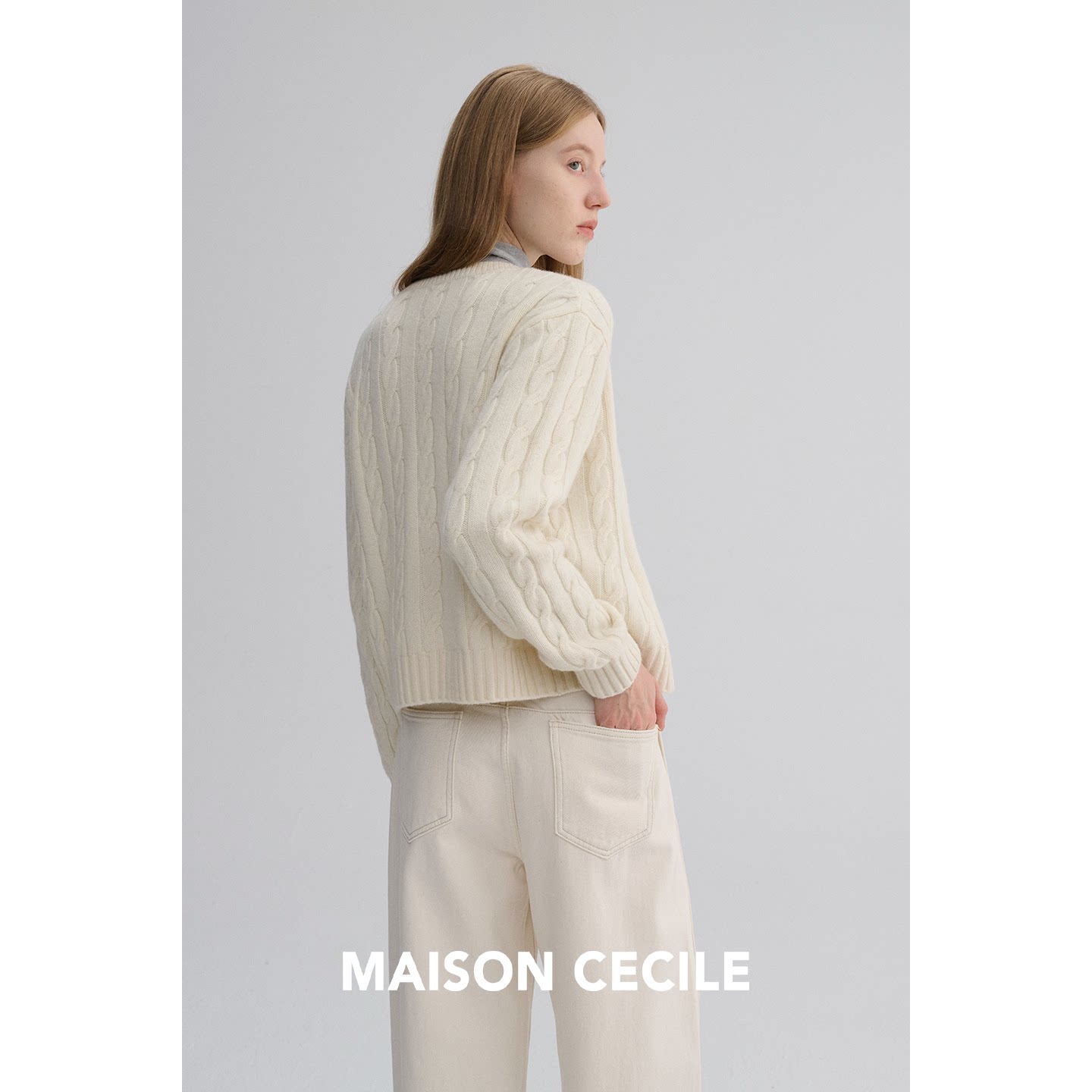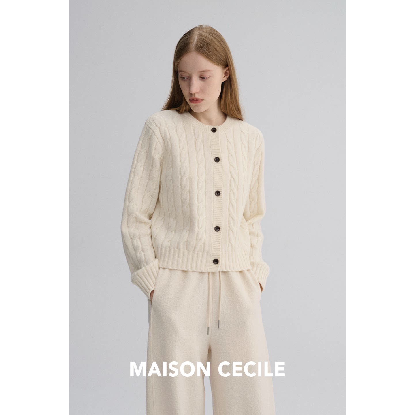 圆领经典 MAISON CECILE 复古绞花肌理感软糯羊毛修身 百搭针织开衫