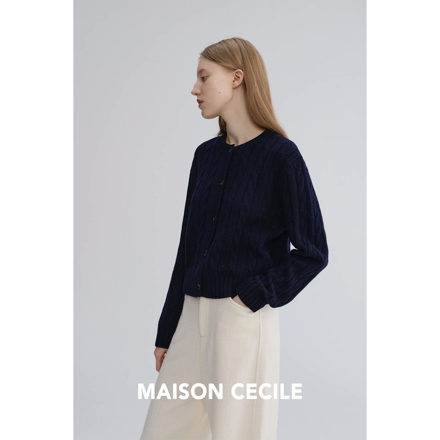 为您提供商品圆领经典 MAISON CECILE 复古绞花肌理感软糯羊毛修身 百搭针织开衫的详细介绍,