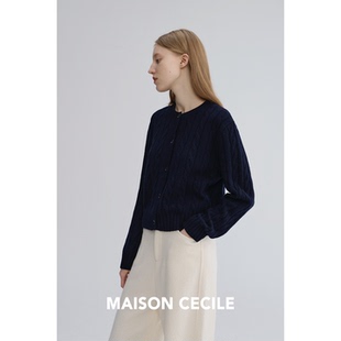 圆领经典 MAISON CECILE 复古绞花肌理感软糯羊毛修身 百搭针织开衫由