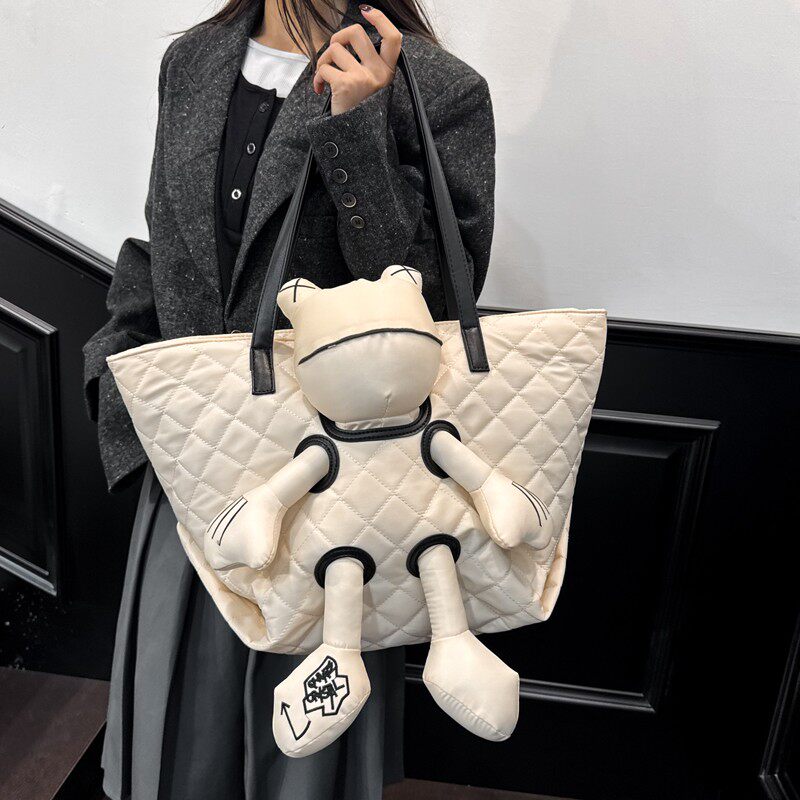 ⭐小红书推荐⭐卡通公仔托特包女大容量黑色菱格纹单肩手提包休闲百搭,所属通用款女包分类,由淘宝网挑选推荐!小红书抖音网红同款!哪里有卖卡通公仔托特包女大容量黑色菱格纹单肩手提包休闲百搭和多少钱质量怎么样✅。