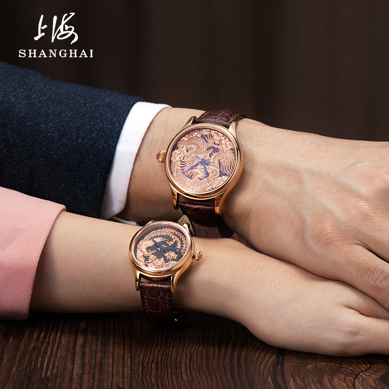 自动机械表情侣腕表6008aa 上海65周年24K金典藏限量国产手表男士