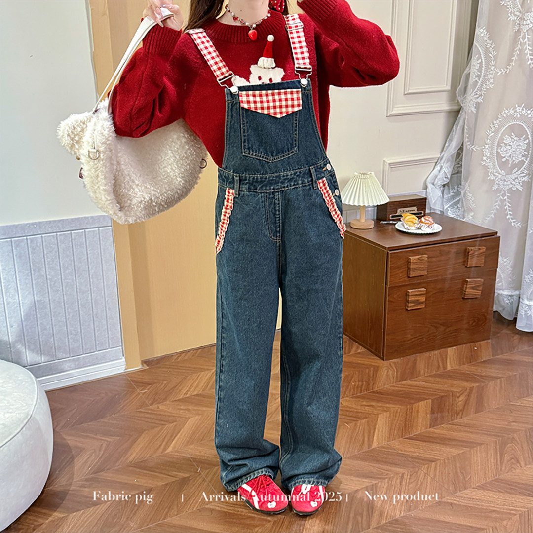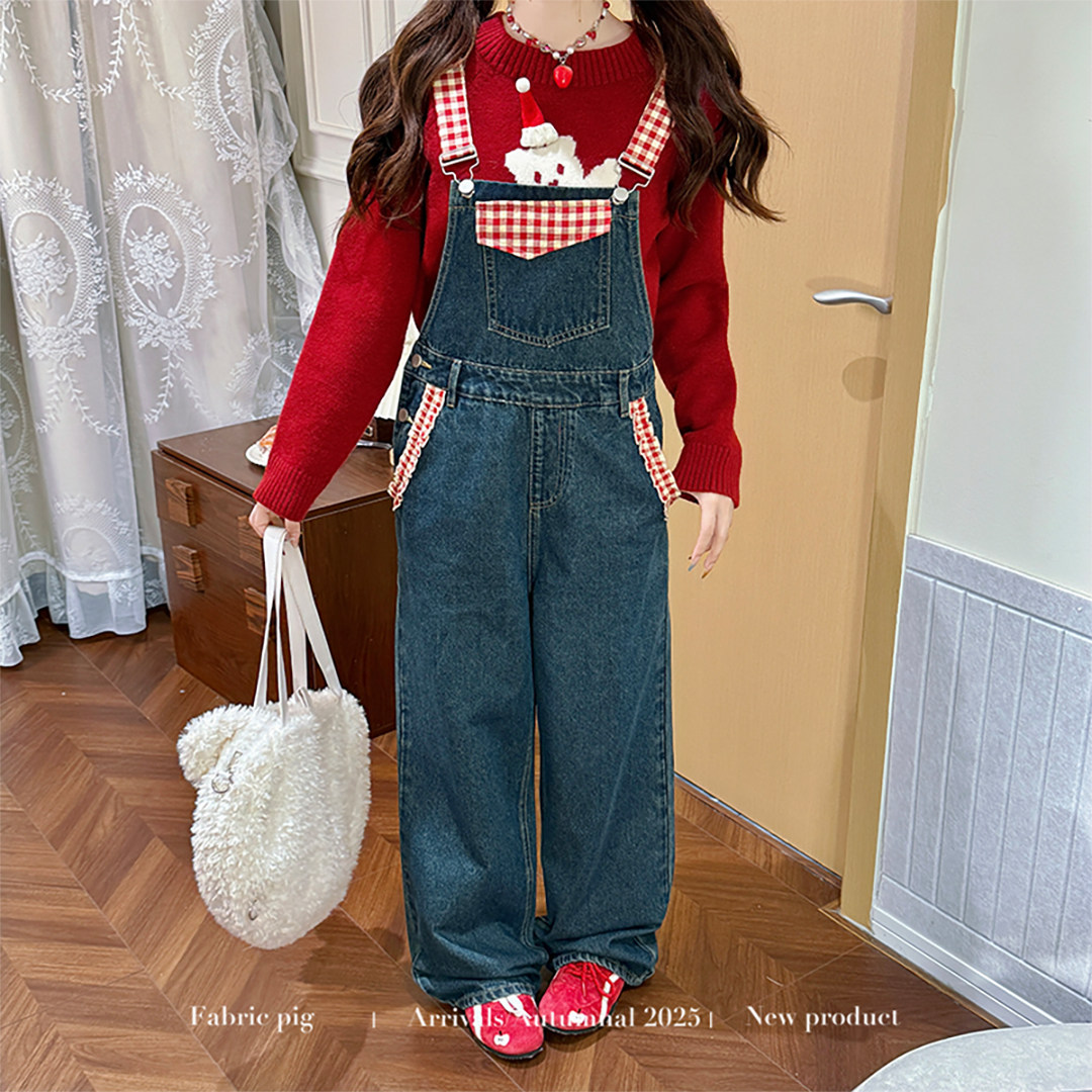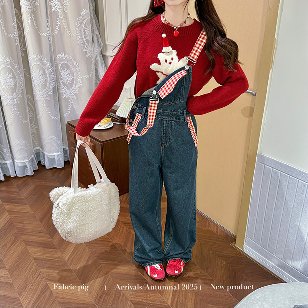 织物猪 慵懒感红色圆领毛衣女秋冬可爱松弛套头针织上衣 芭蕾小熊