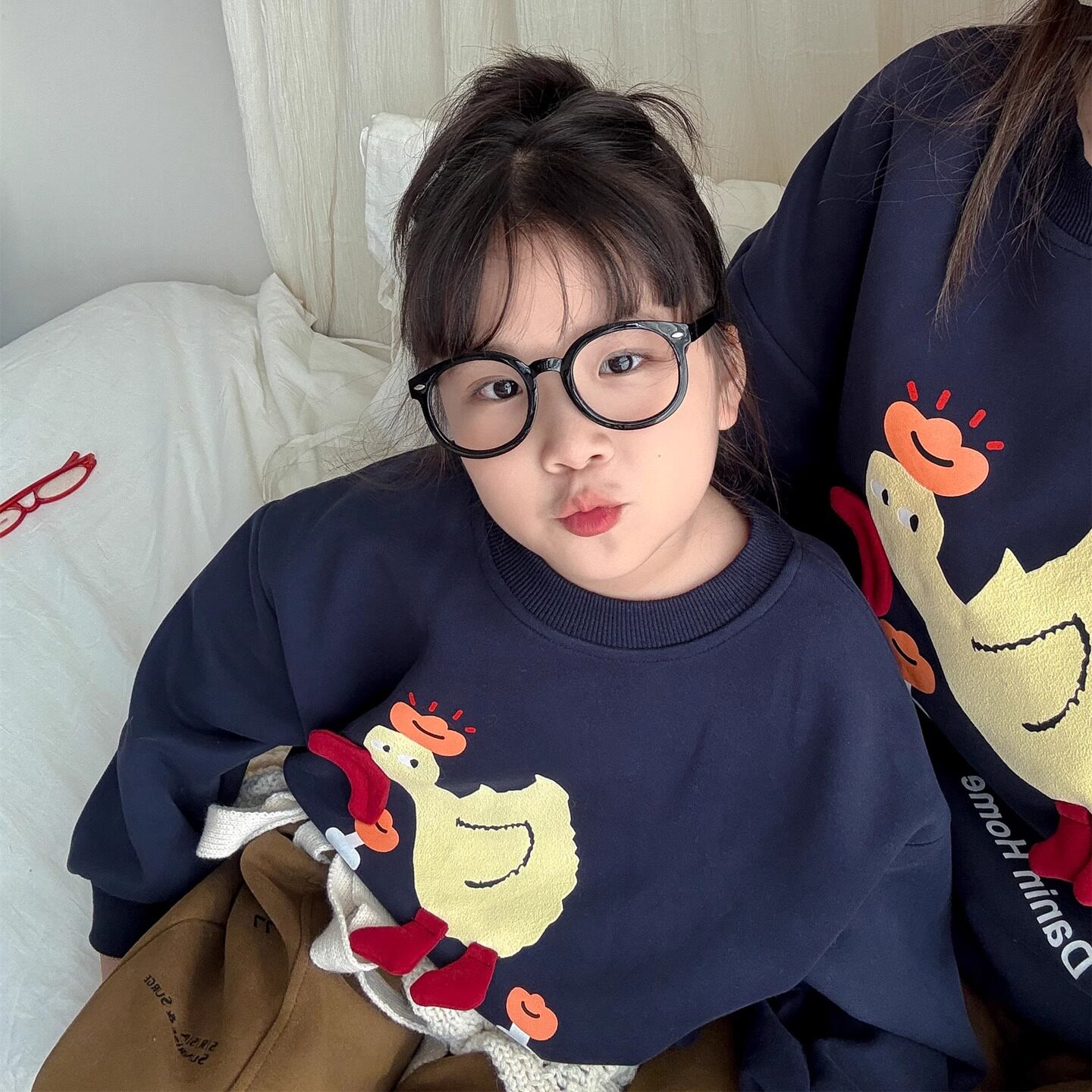 男女童韩系圆领卫衣一家三口秋冬纯色圆领百搭亲子卫衣 炸街亲子装由