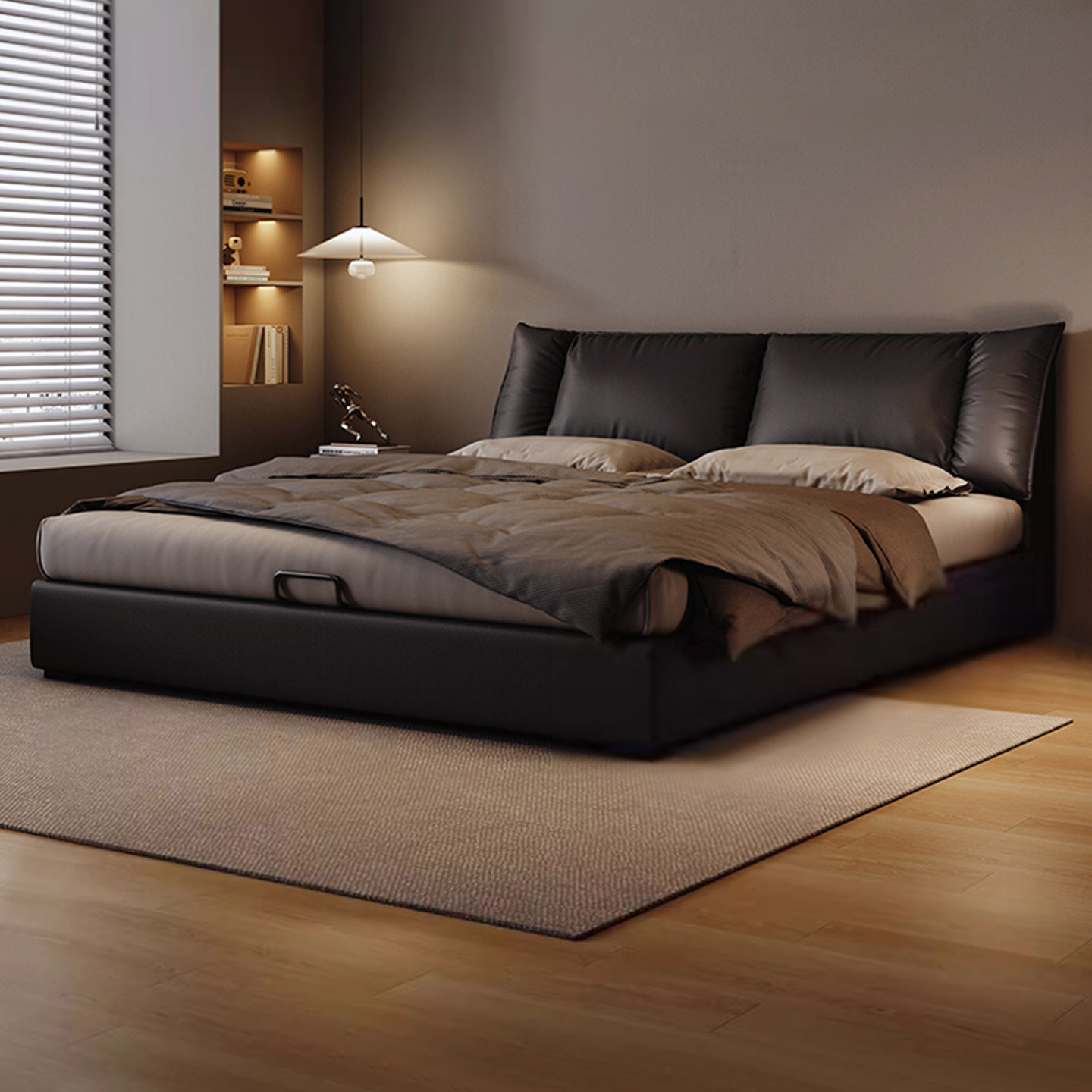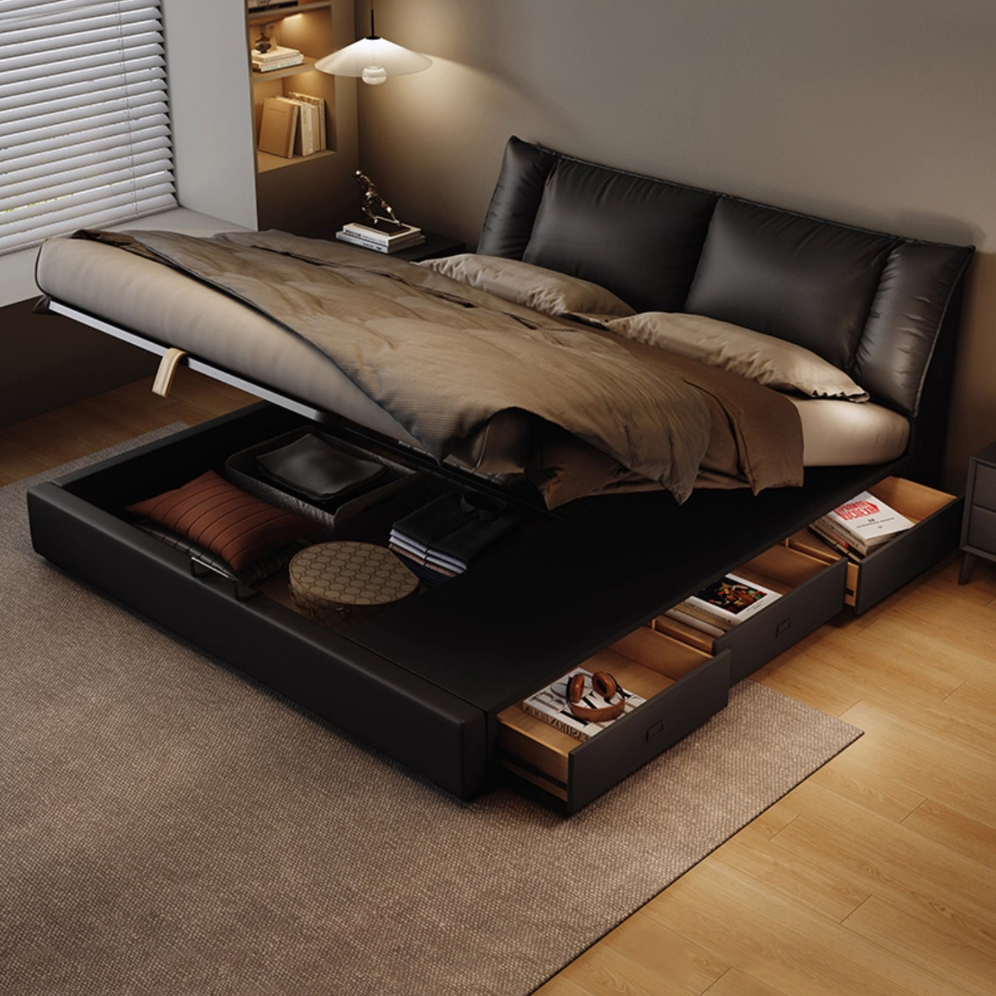 黑色泡芙皮艺床现代简约主卧软包大床轻奢小户型储物床双人床婚床