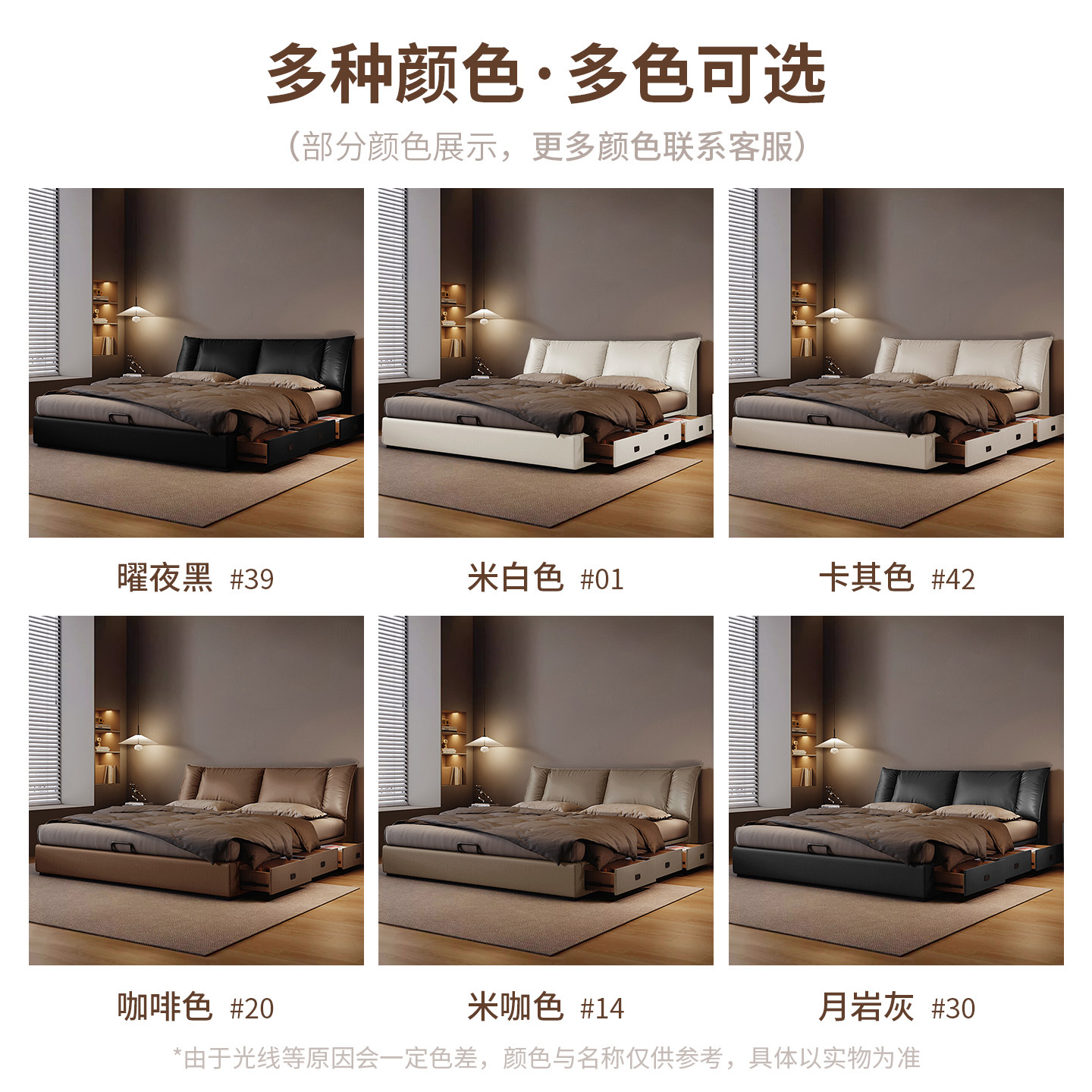 真皮床2米x2米2主卧大床现代轻奢高级感1米8皮艺软包储物婚床 意式